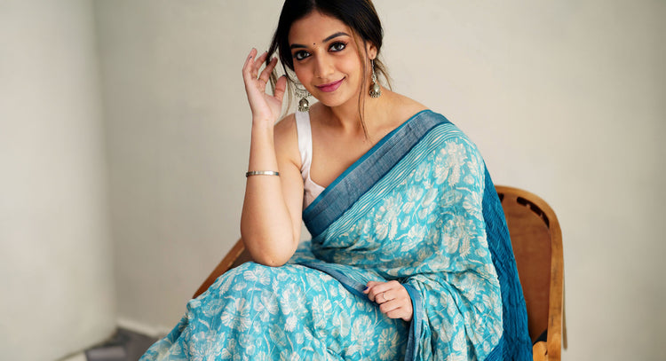 Turkish Blue Organic Linen Saree
