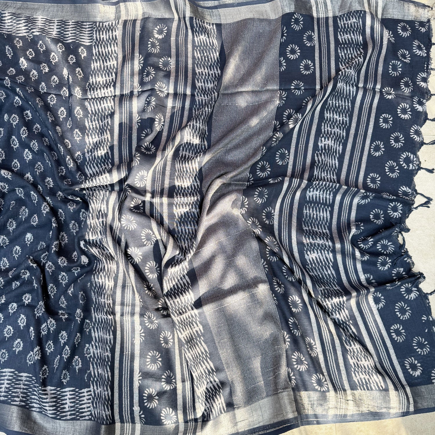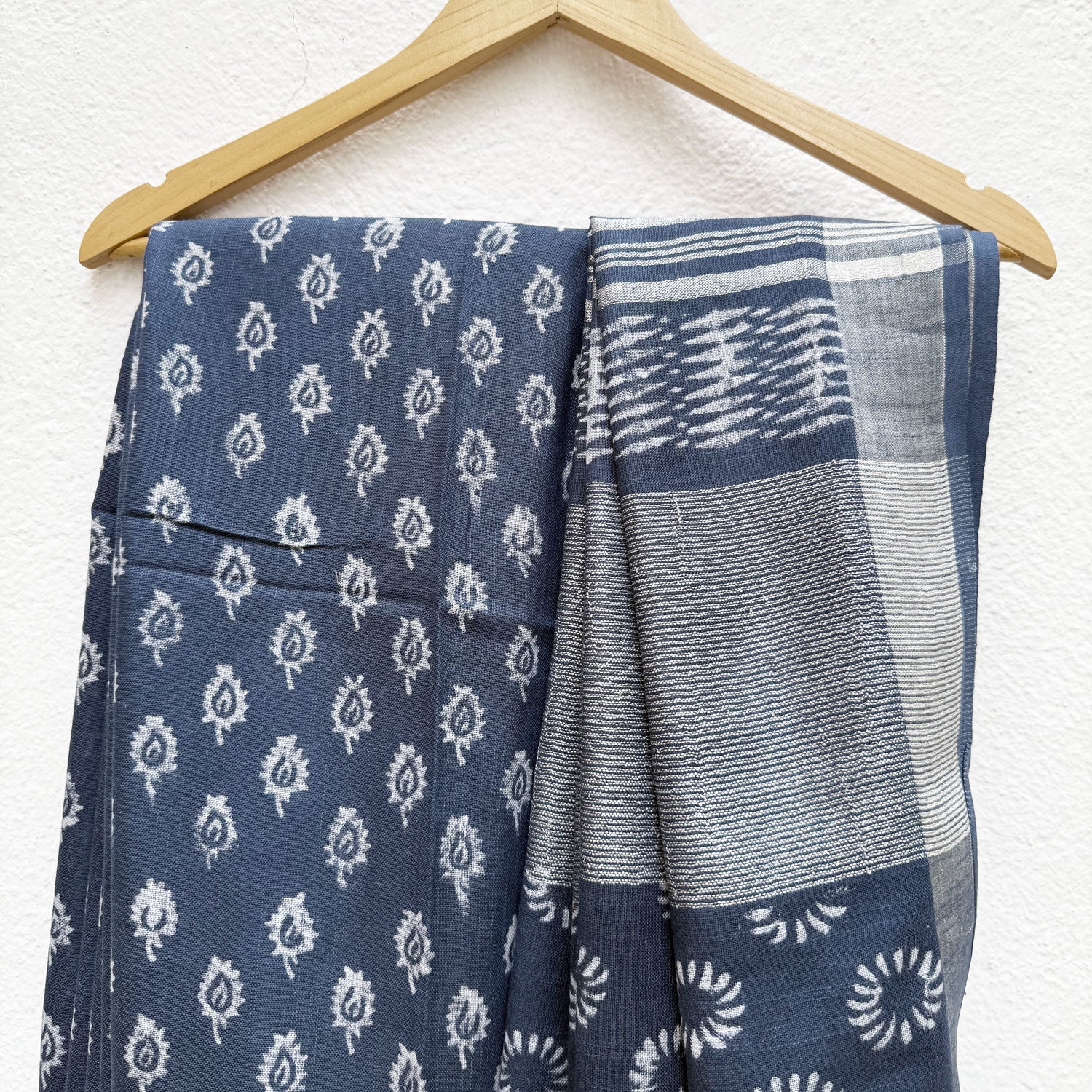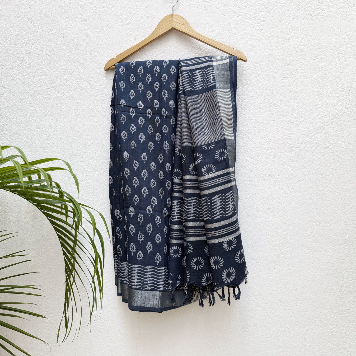 Elevate your everyday elegance with the Ambika Indigo Handblock Cotton Linen Saree — a graceful blend of tradition and comfort. Handcrafted with precision, this saree features exquisite handblock prints in classic Indigo hues, making it a timeless addition to your wardrobe.