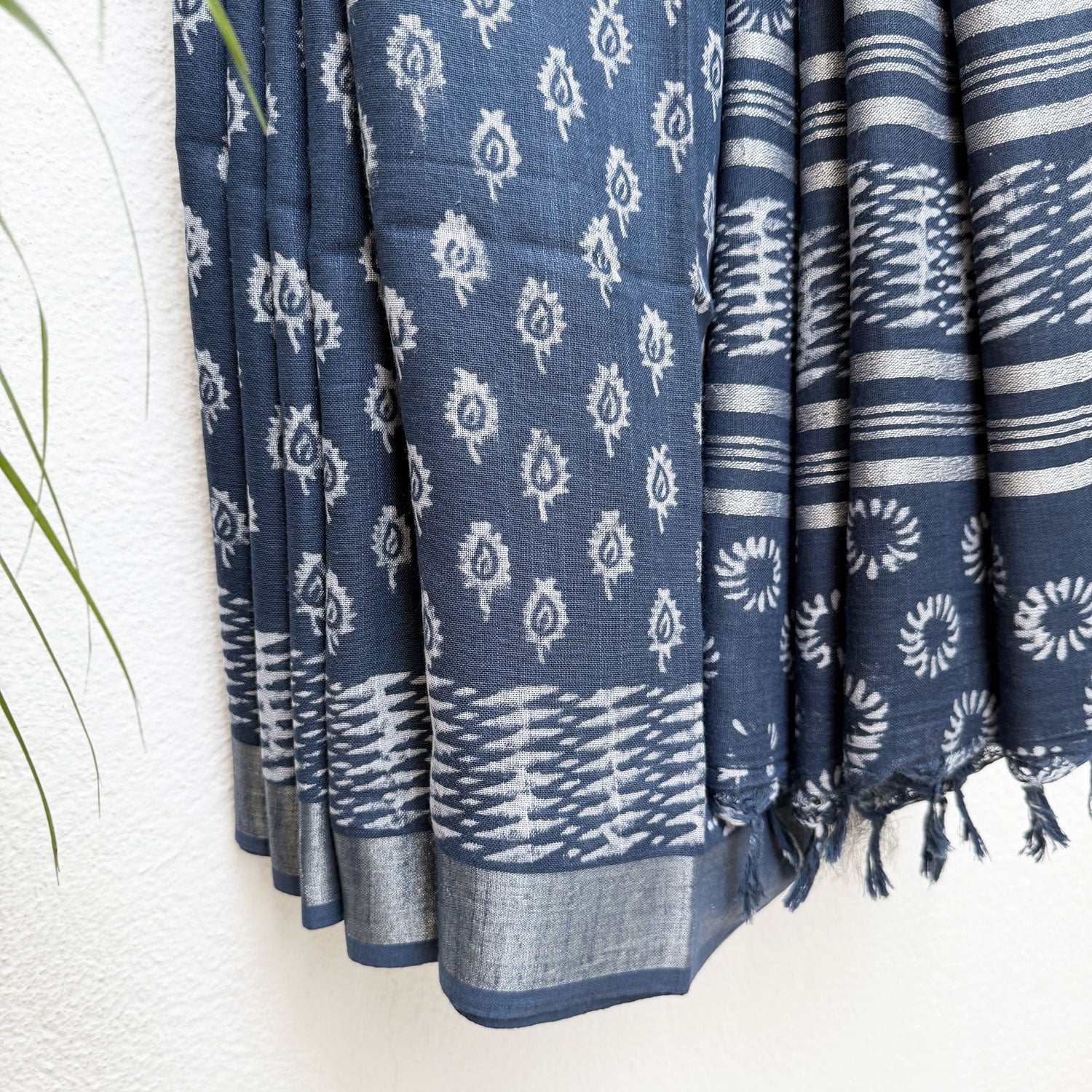 Discover your inner self with the Ambika Cotton Linen saree from our newest collection- Indigo Diaries.