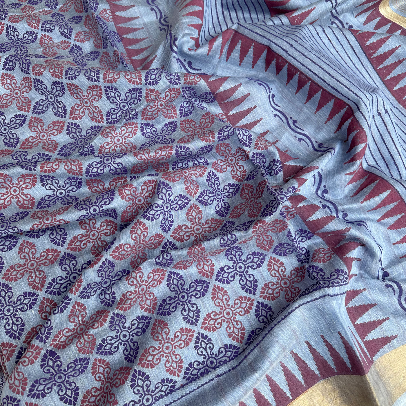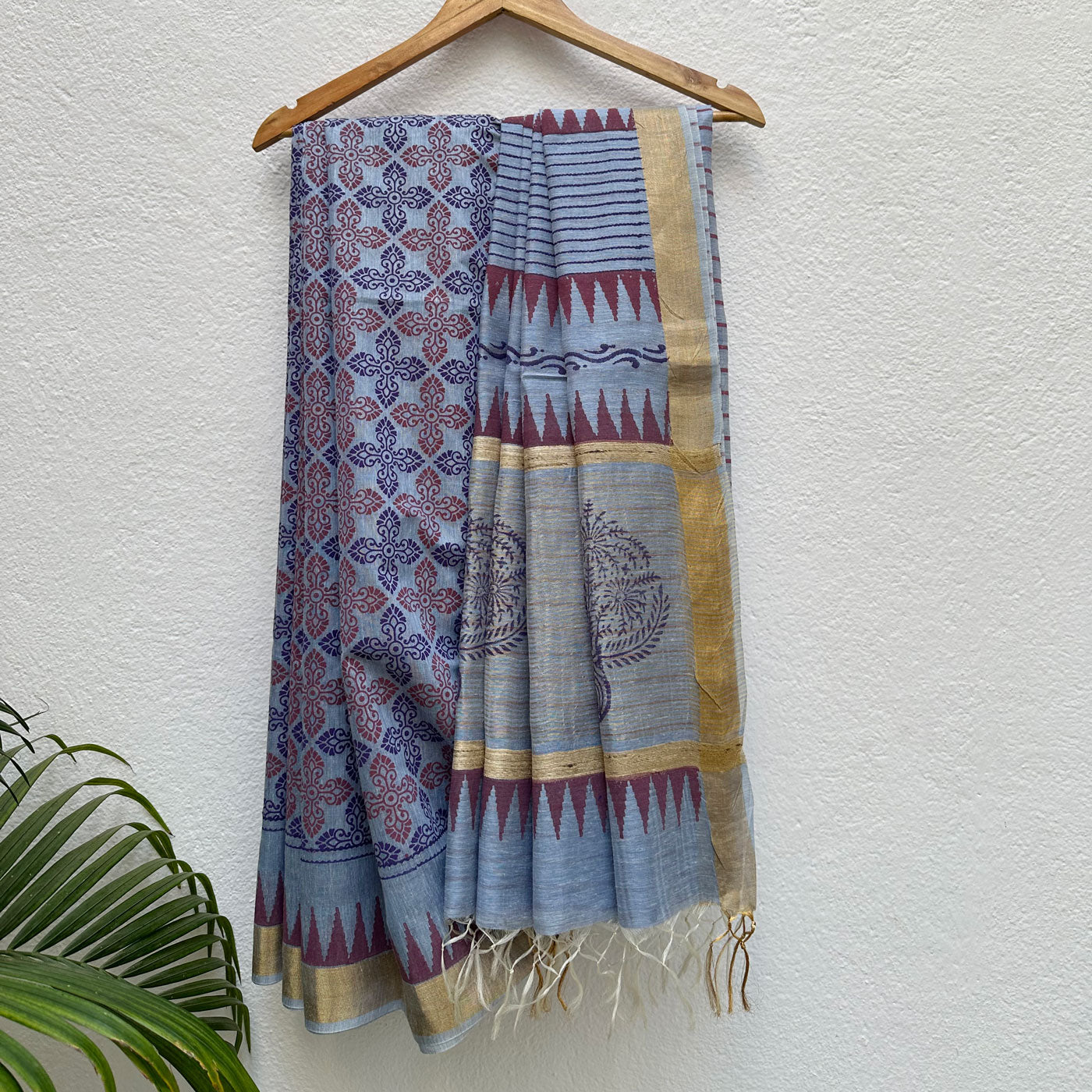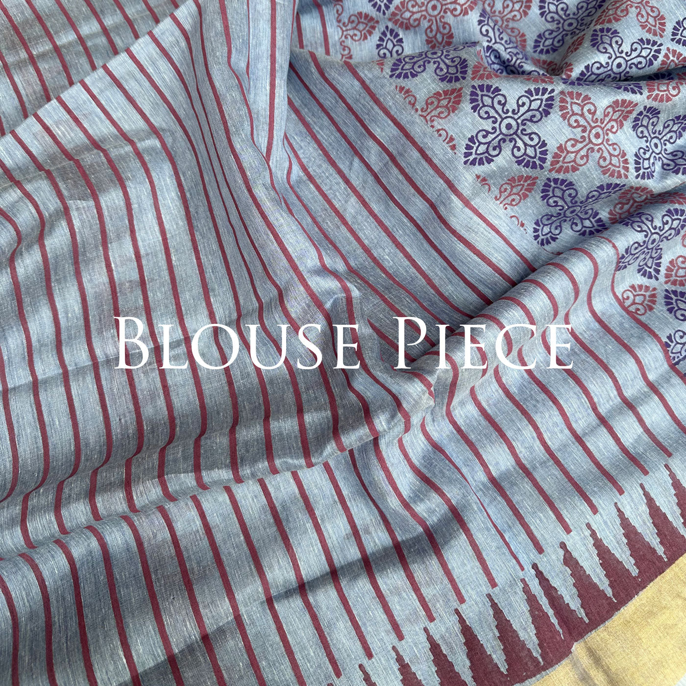 Bringing you the Ananta Silk Linen Saree from our Hathkargha range, a collection of Handblock Printed Silk sarees.