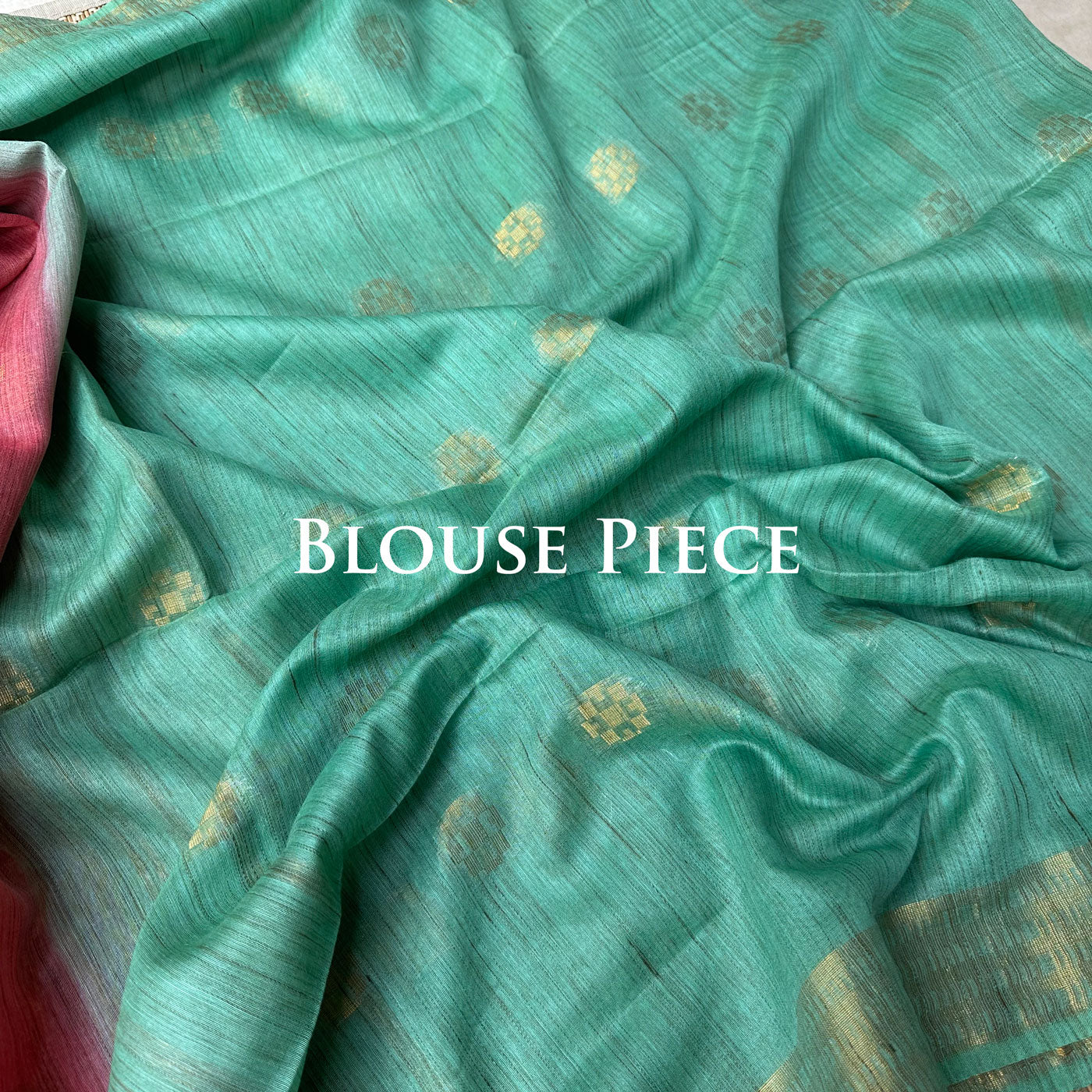 Turn heads in this exquisite light maroon and green saree! The golden zari motifs add the perfect touch of glamour and the unique blend of colors will have you swooning. The zari-embellished pallu adds that extra oomph — no need for extra sweetness! Slip it on and be ready to rock the limelight. You'll be sparklin' and shined up — fashion forward in no time!