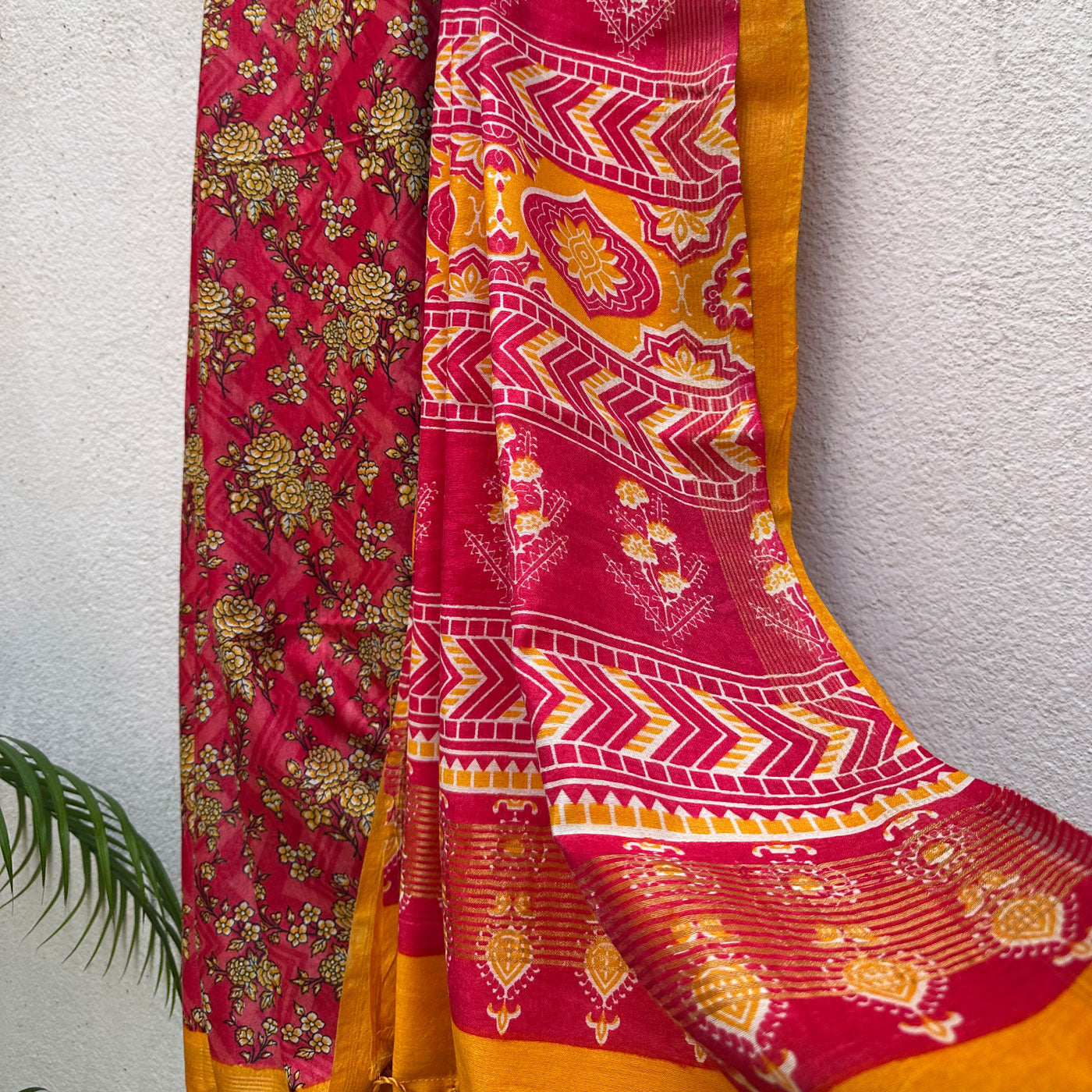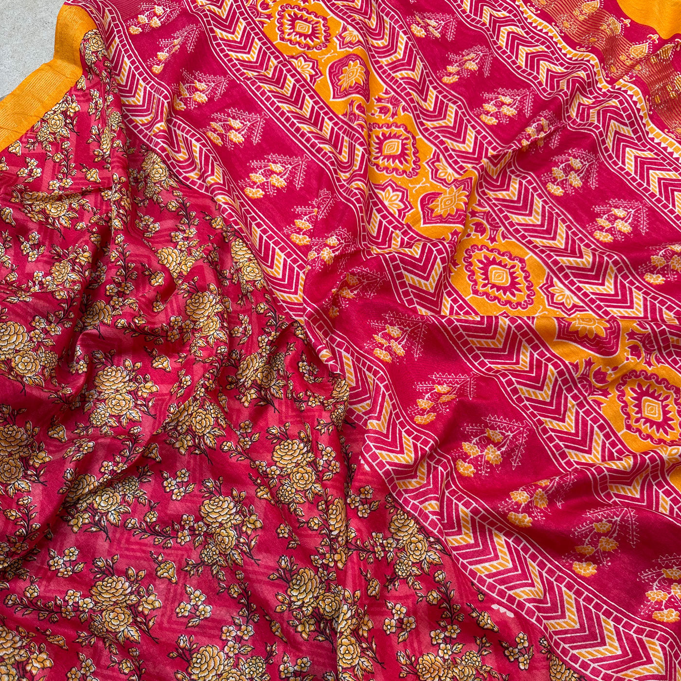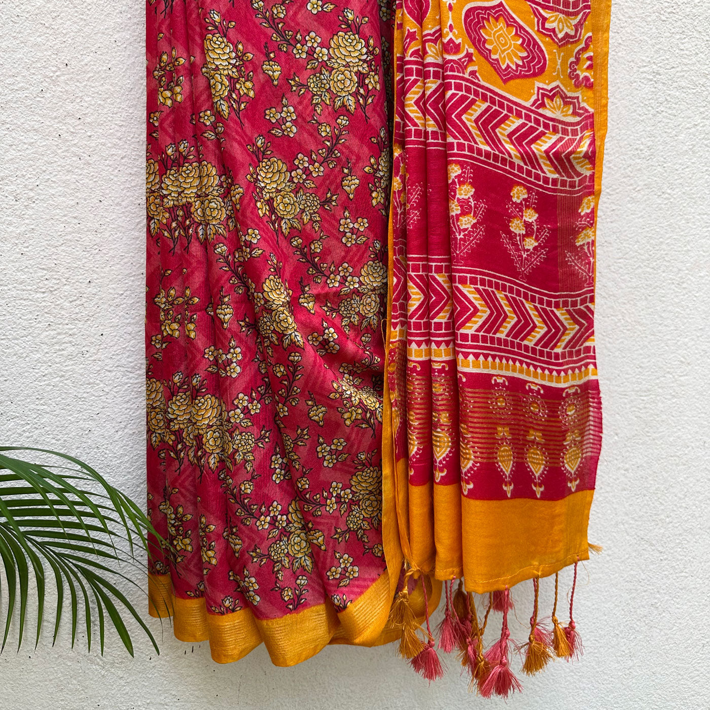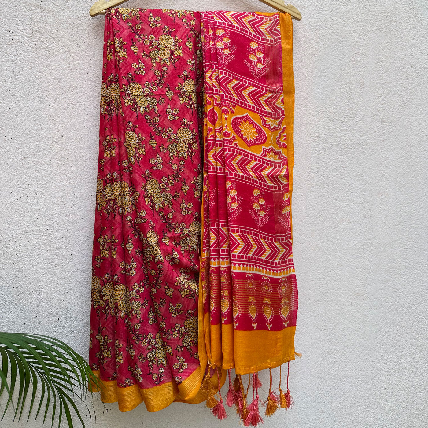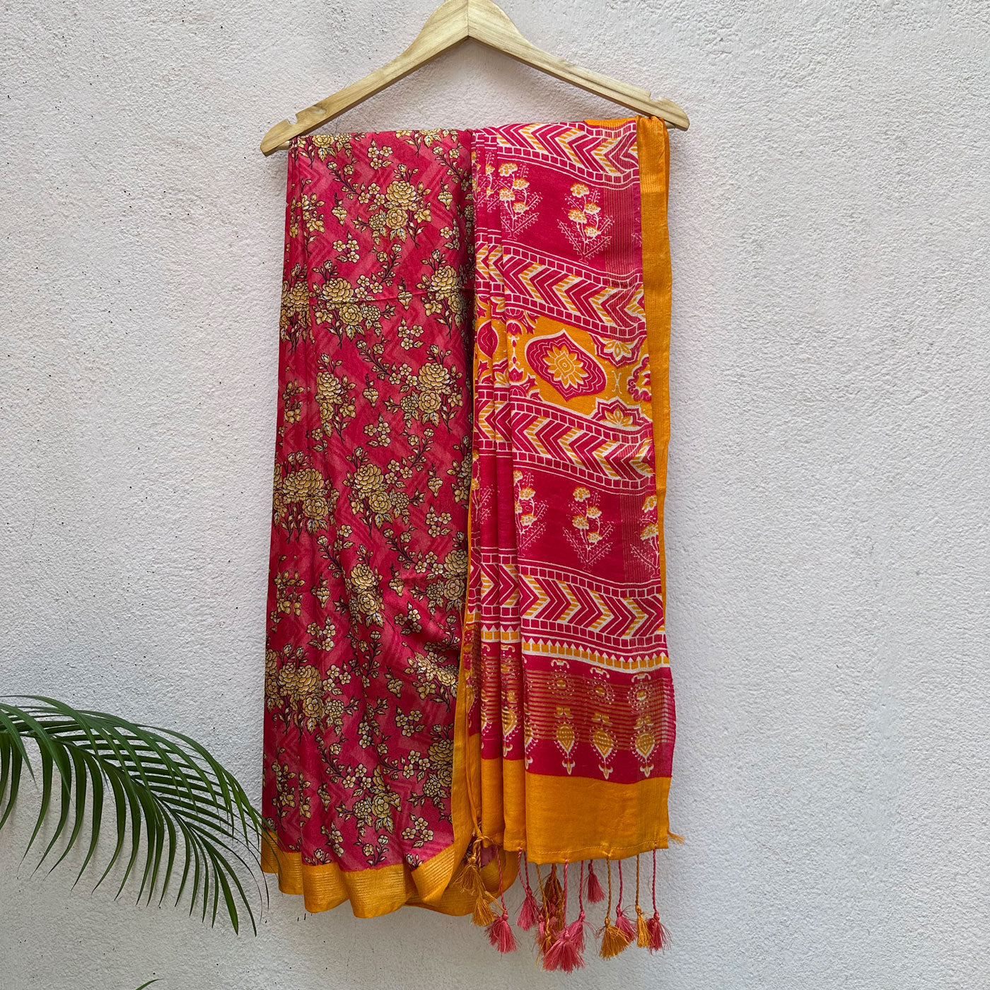 Grab these beauties from our Cardinal Cotton Viscose Silk Saree. This exquisite saree boasts a golden border, exuding splendor and charm in every ensemble.