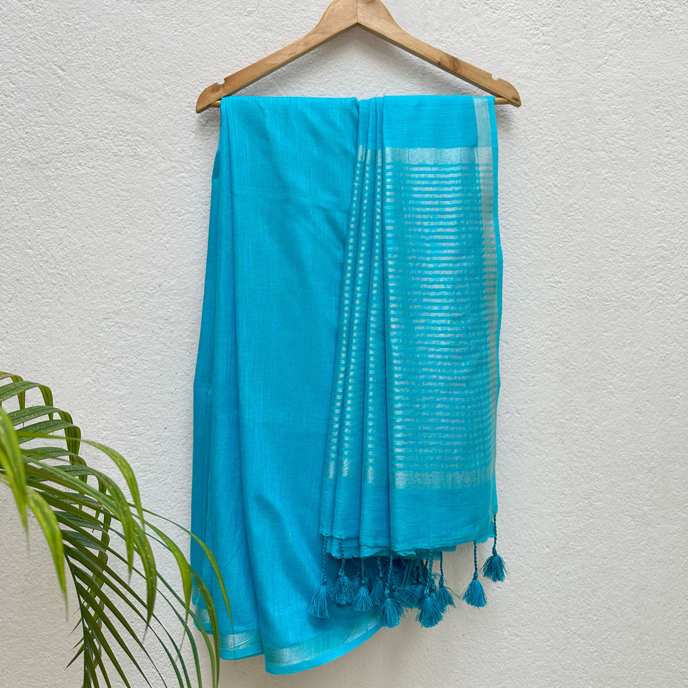 Elevate your wardrobe with this exquisite cotton saree, complemented by a tastefully printed blouse and a refined silver zari border. The pallu features intricate striped zari work, making it a versatile choice for professional settings as well as casual weekend wear. The Celeste Blue Cotton Saree offers a sophisticated blend of elegance and comfort, enhancing your daily attire with understated style and grace.
