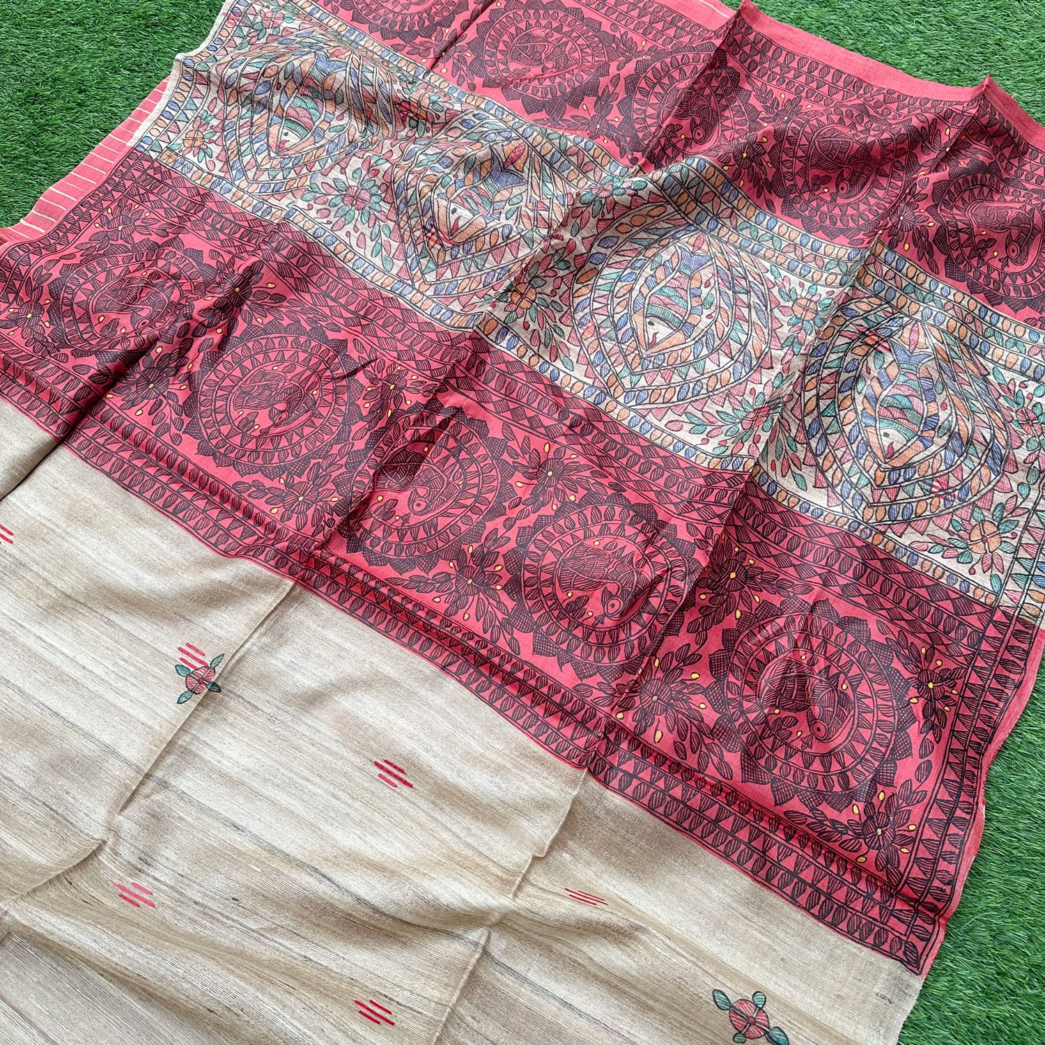 Chitralekha Handpainted Madhubani - Handwoven Tussar Silk Saree