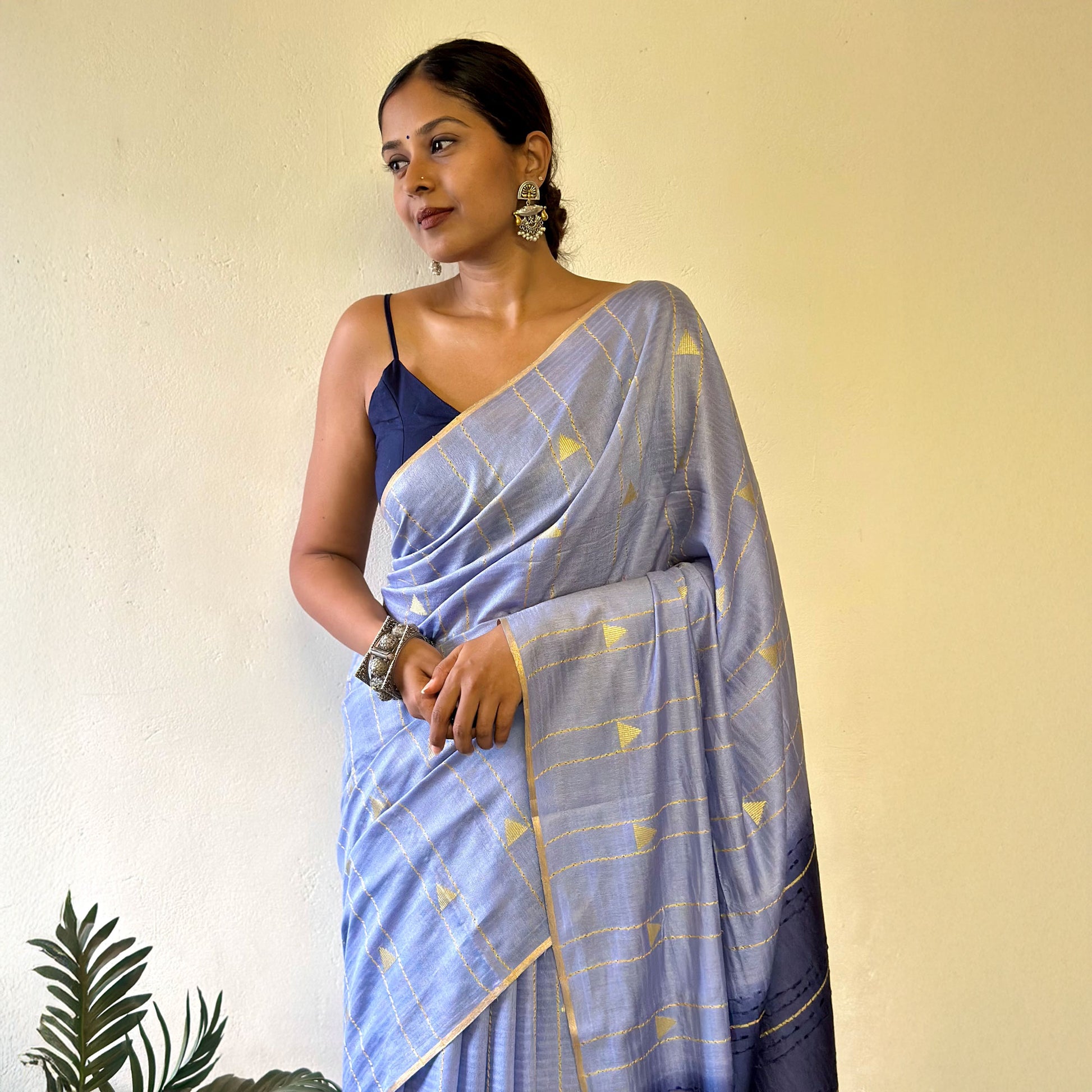 Keep dreaming with the Cloudy Storm Cotton silk saree from our Zarinama collection this festive season.