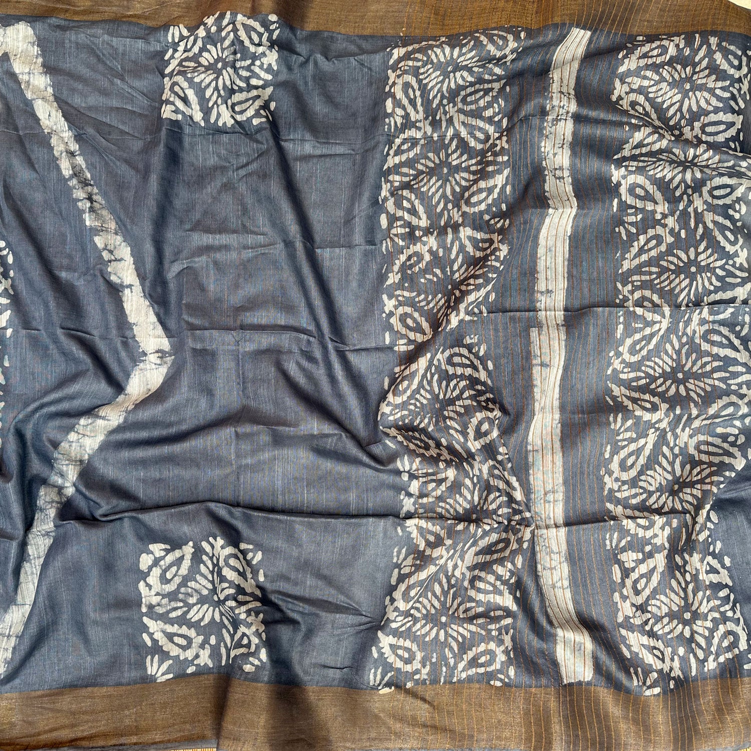 Find your happy place with the Cobalt Blue Batik Saree.