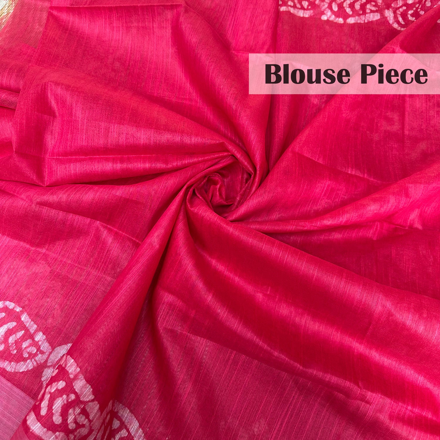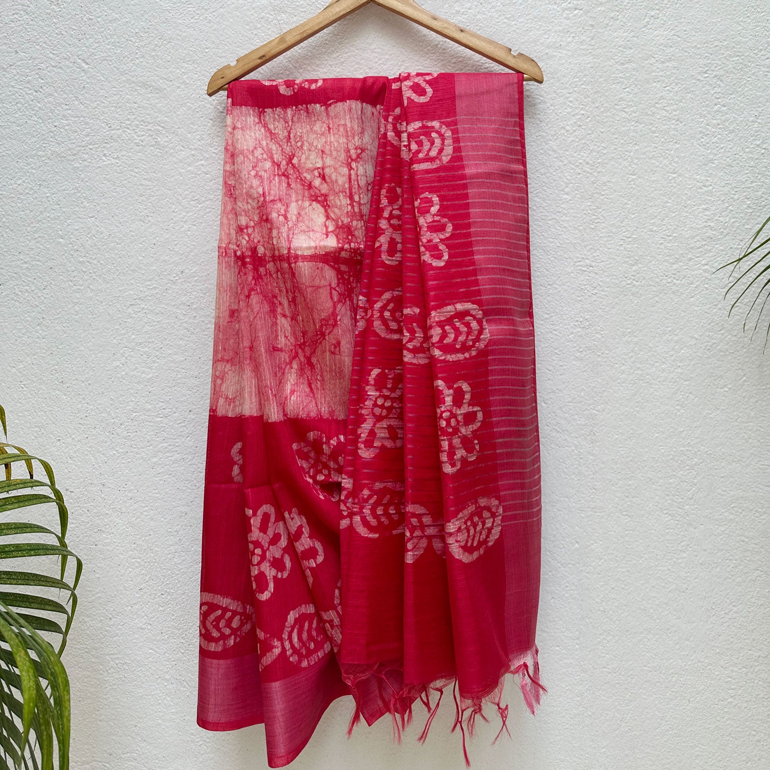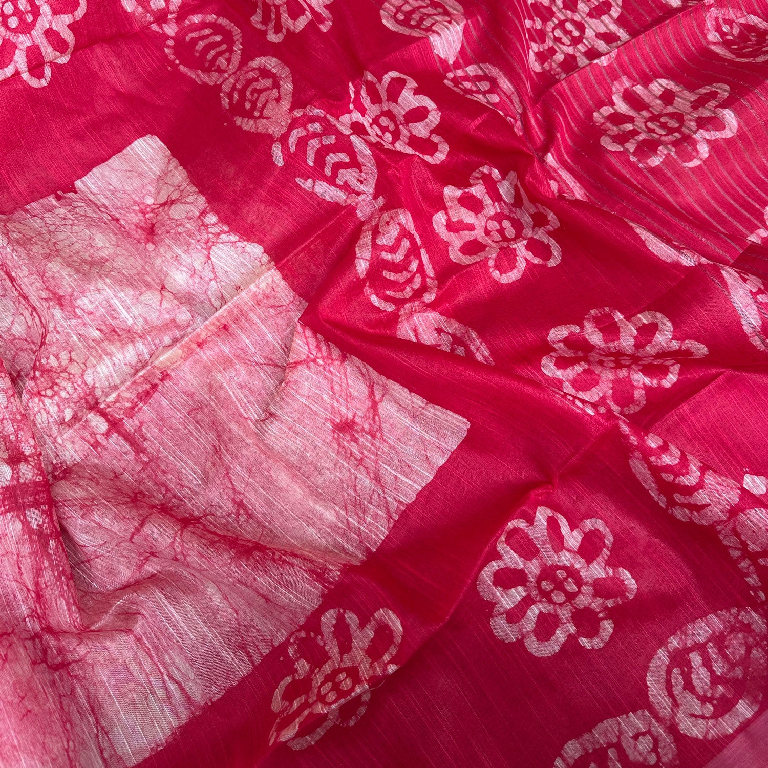 Experience the vibrant elegance of our Fiery Red Batik Cotton Silk Saree.