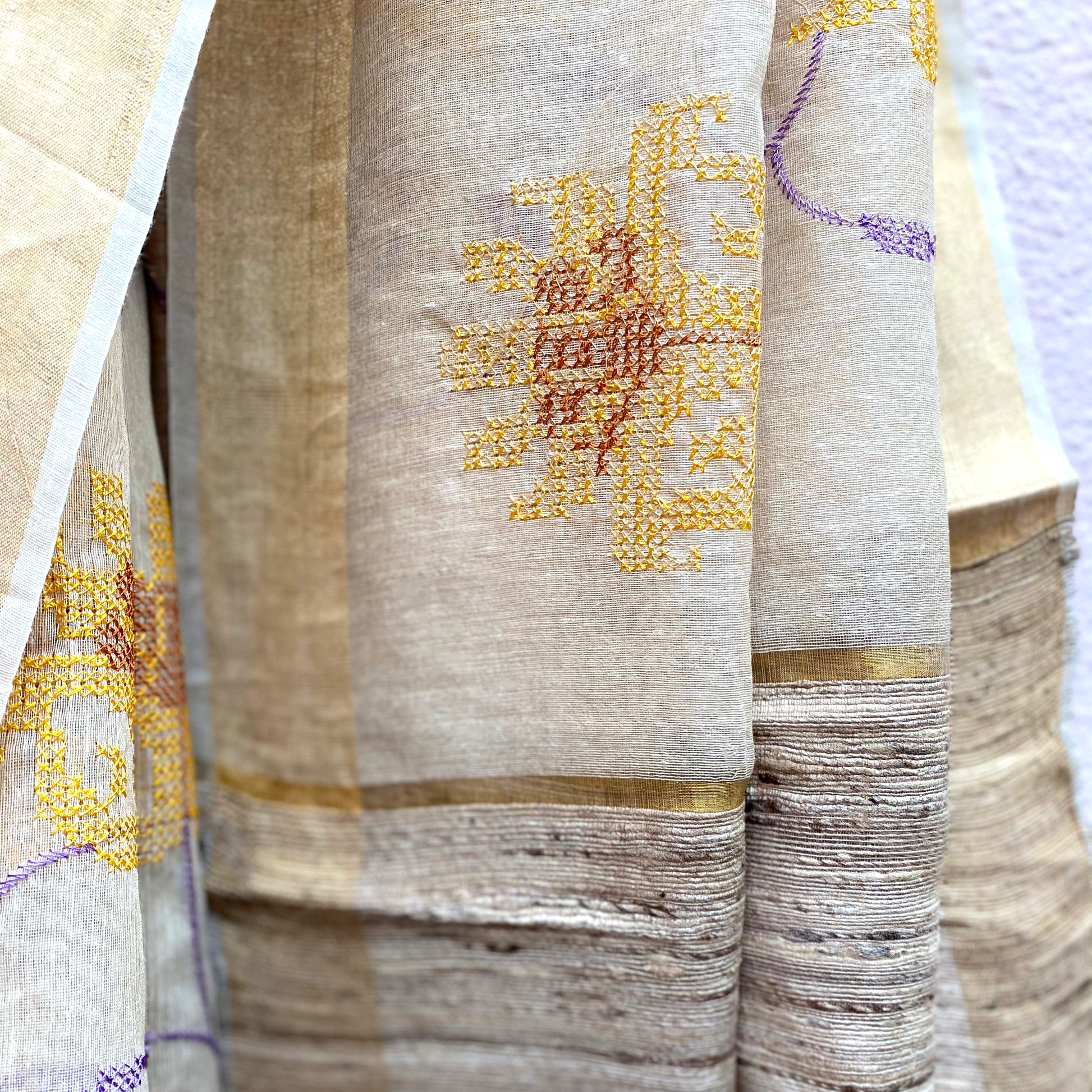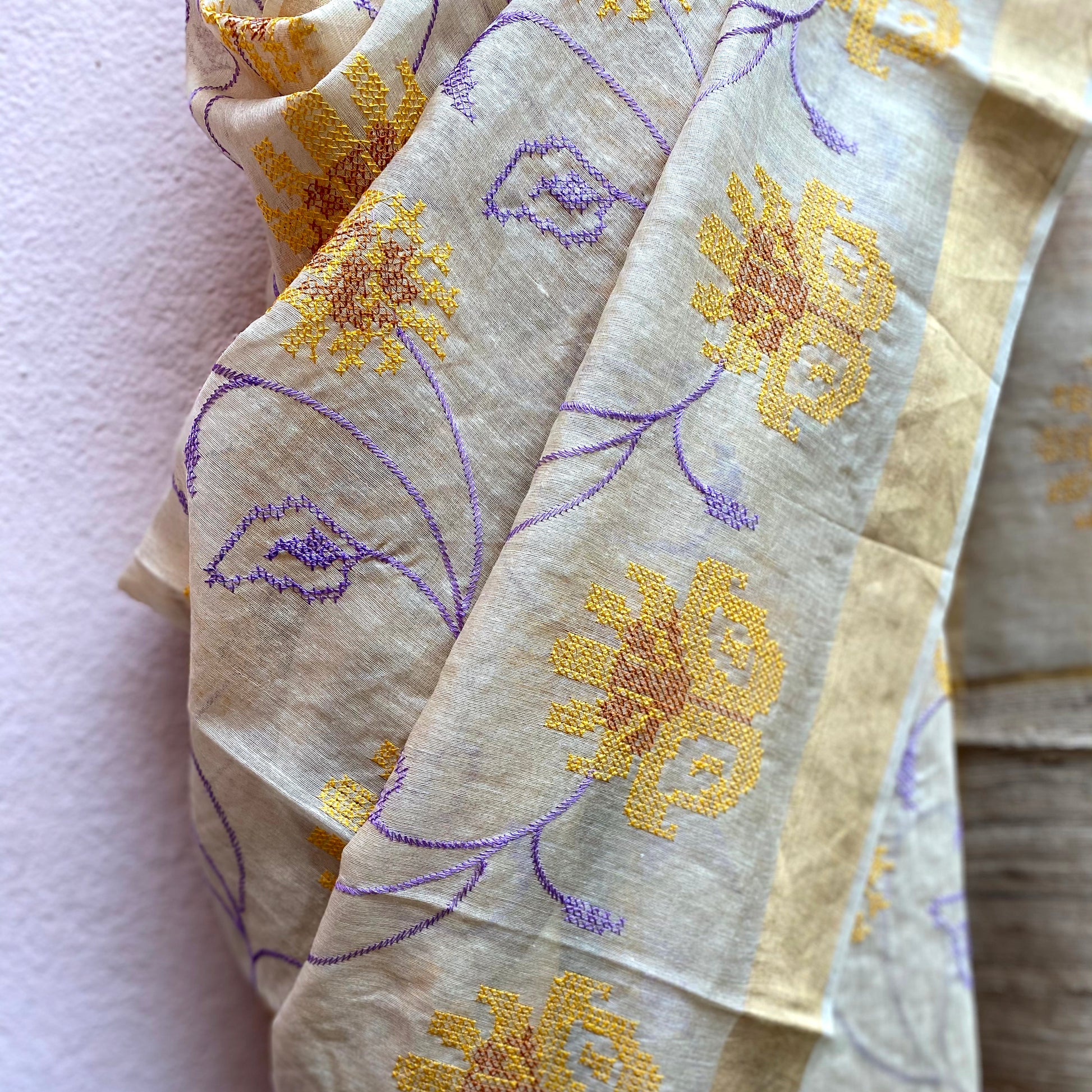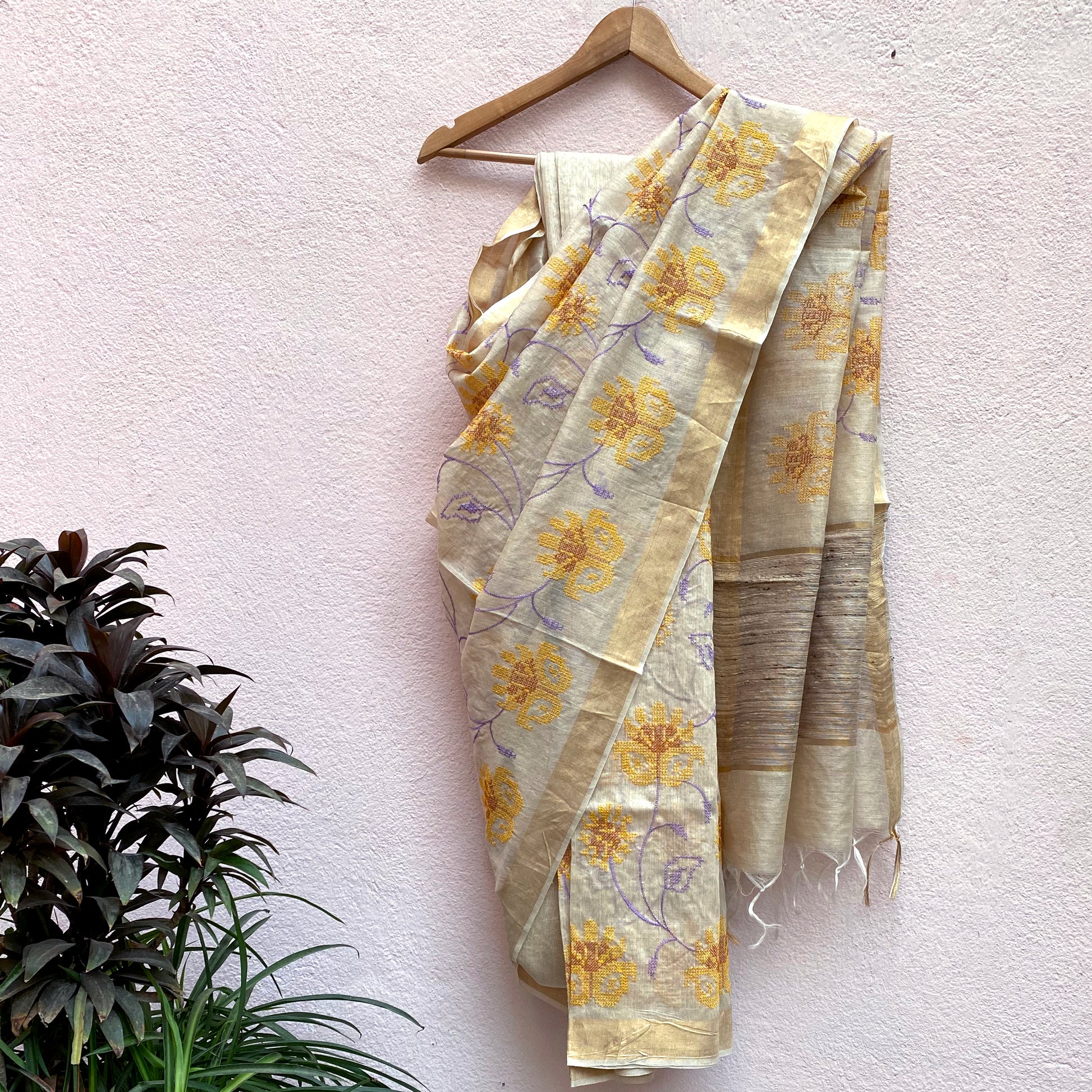 Freesia Bloom Embroidered Tussar Georgette Silk Saree