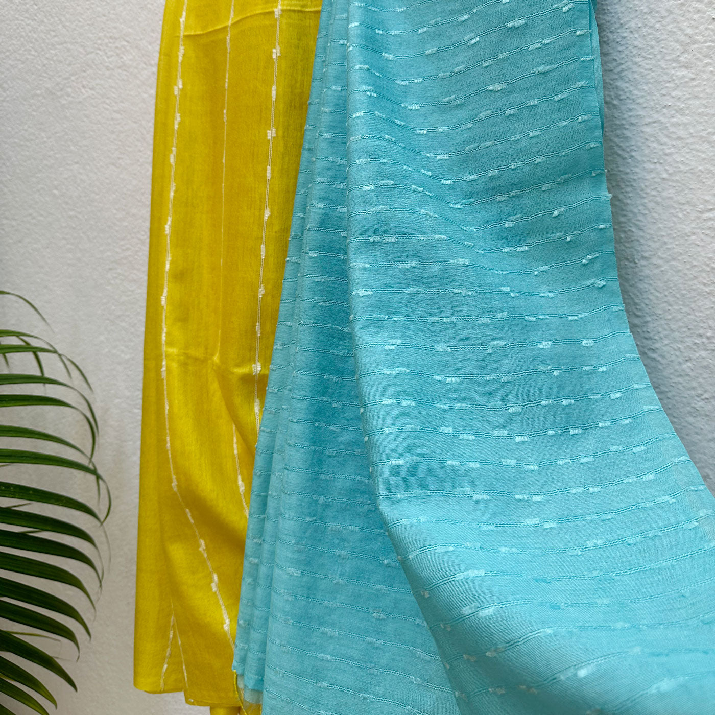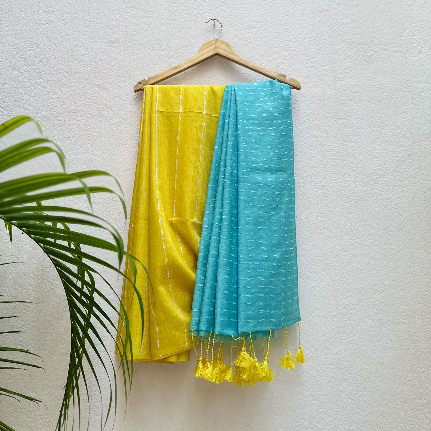Experience the luxury and elegance of our Golden Kiwi Cotton Silk Saree. Made with breathable cotton silk, this saree features delicate fancy yarn stripe and a borderless design. Complete the look with a matching tassel pallu. Elevate your style with this exclusive saree, as the delicate fancy flag yarn stripe on the pallu are sure to leave a lasting impression at any gathering.