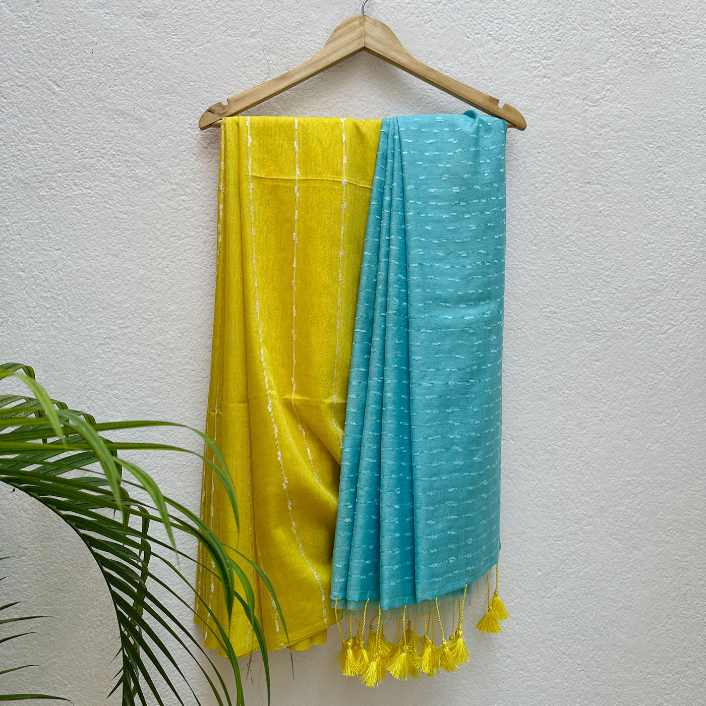 Introducing our latest addition - the Golden Kiwi Cotton Silk Saree from Zarinama Collection. Get creative and make it your own!