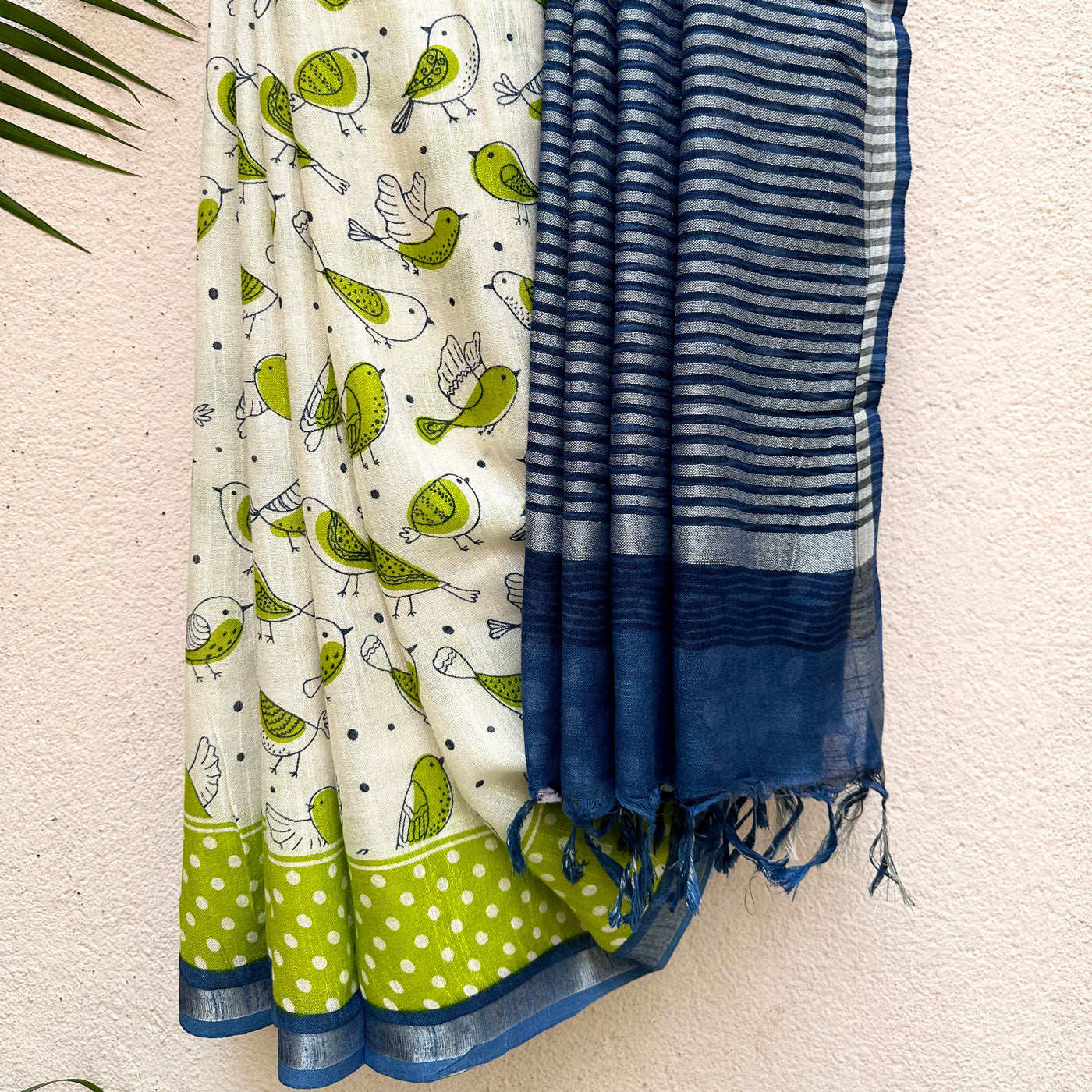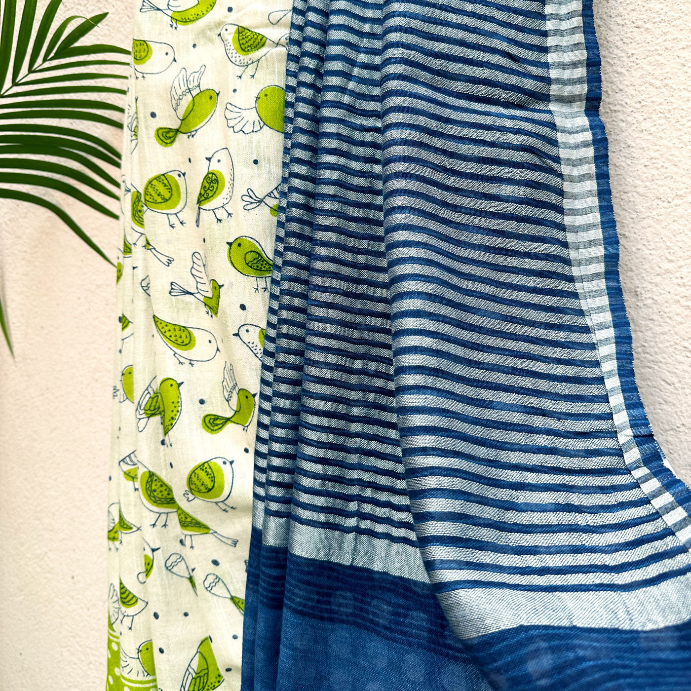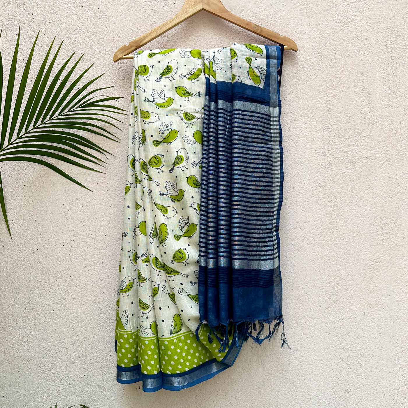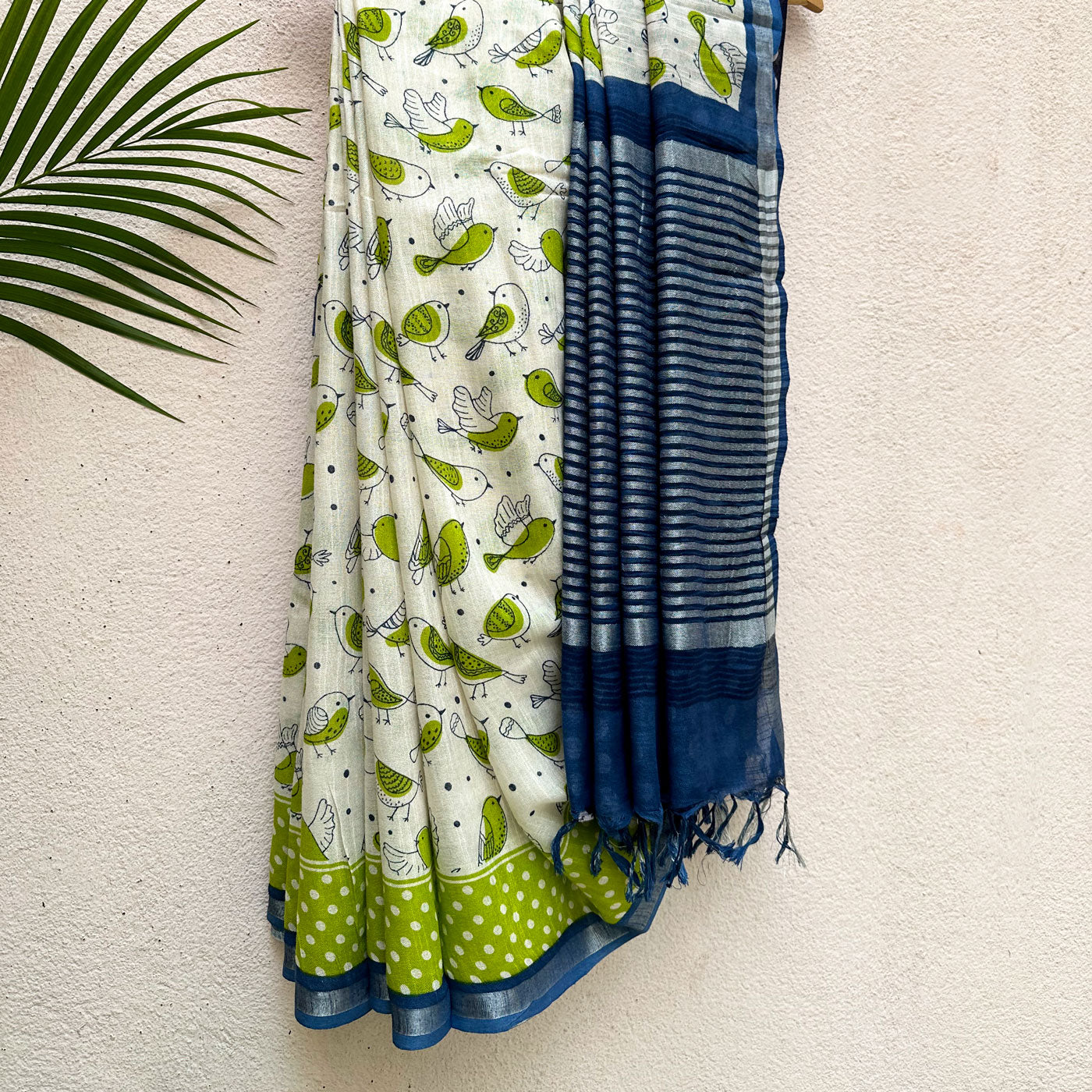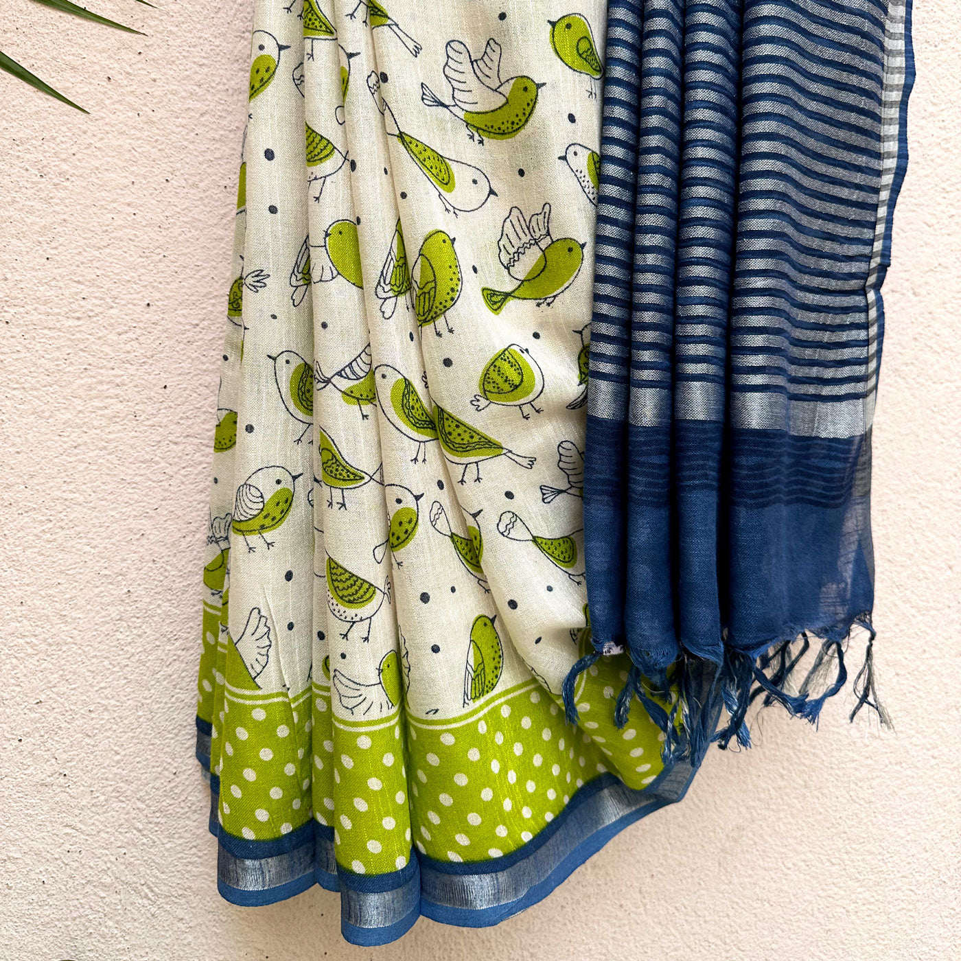 Soar through style in this Green Jay Bird Cotton saree from our Whimsical Wonder collection - it's time to take flight and show 'em what you're made of!