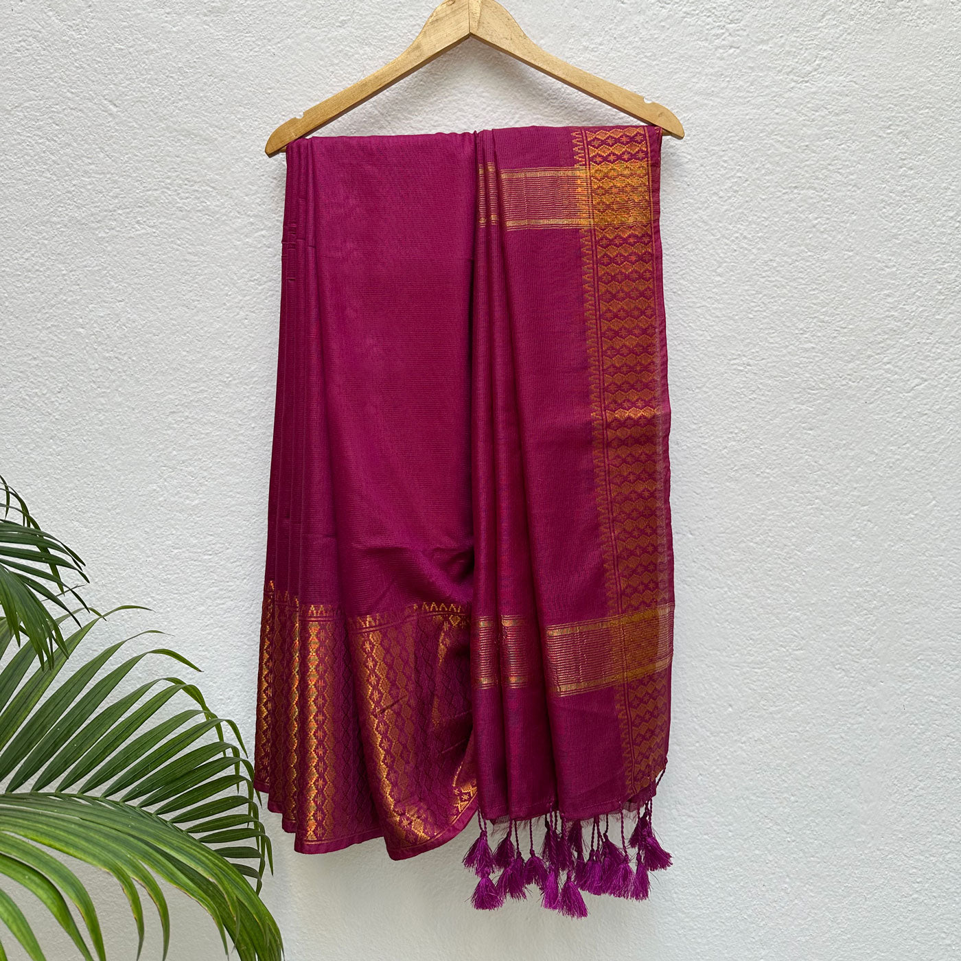 Look no further for a statement piece that's equally elegant and unique. With its striking diamond-shaped border and temple-inspired pattern, this cotton viscose silk saree is the perfect way to add a touch of beauty to any event. Plus, it comes complete with a printed blouse for effortless style.
