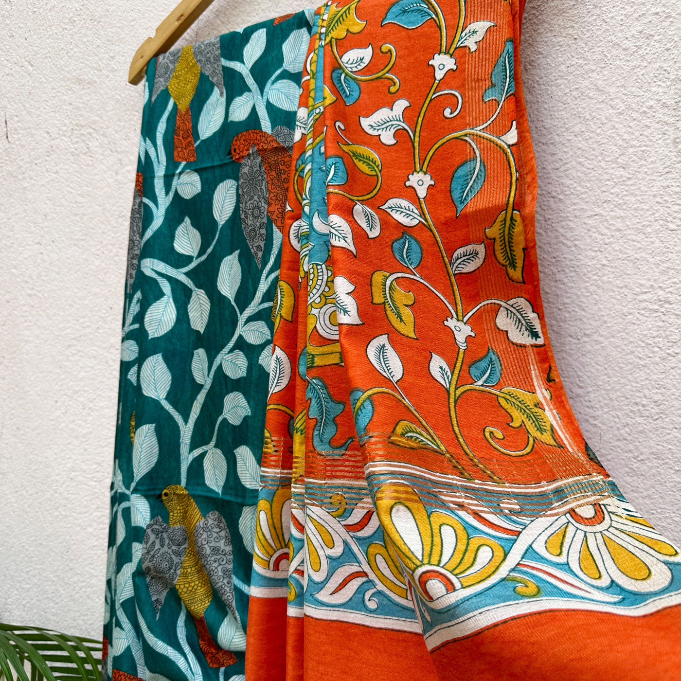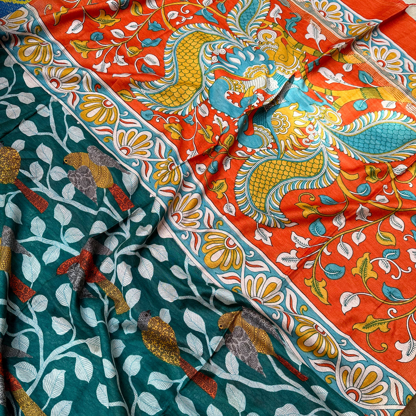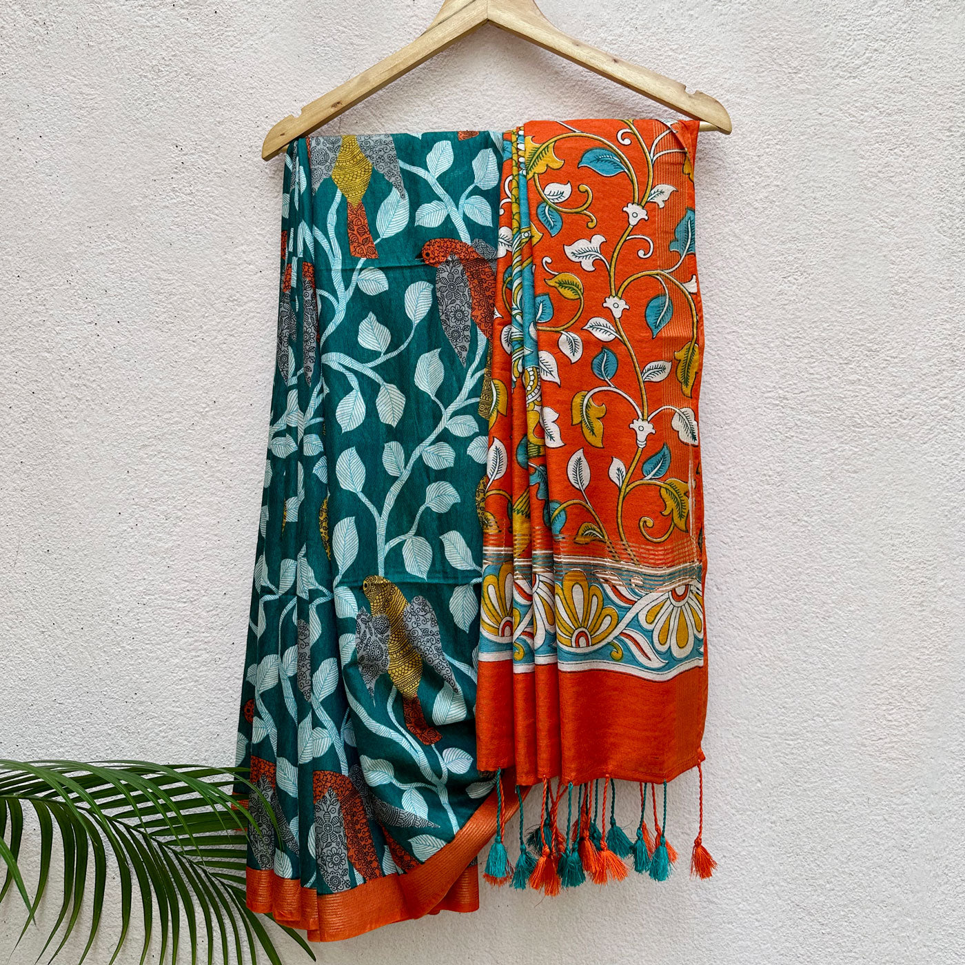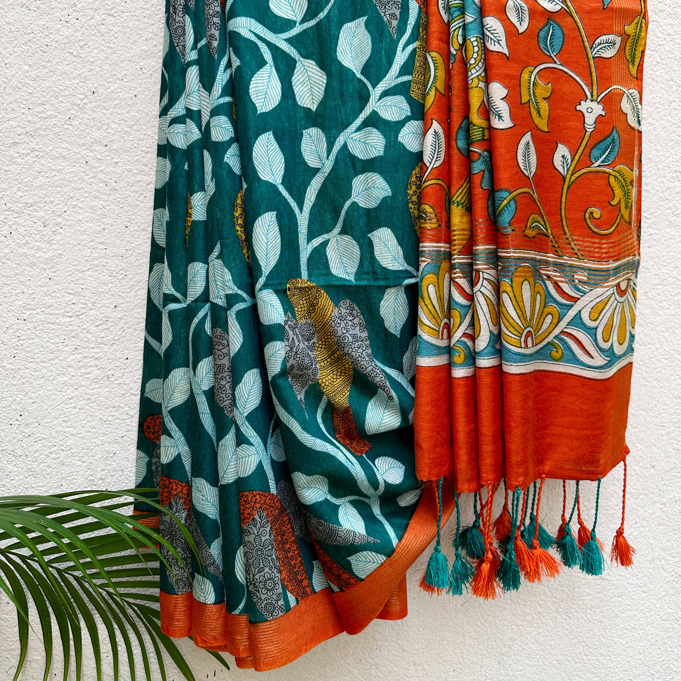 Harbor Kalamkari Chevron Cotton Silk Printed Saree