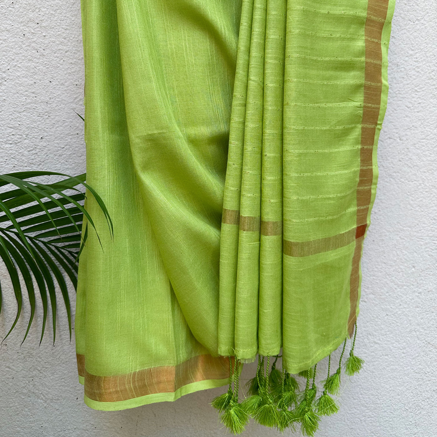 Get ready to channel all the summer vibes in our gorgeous Hariyali Cotton Saree!