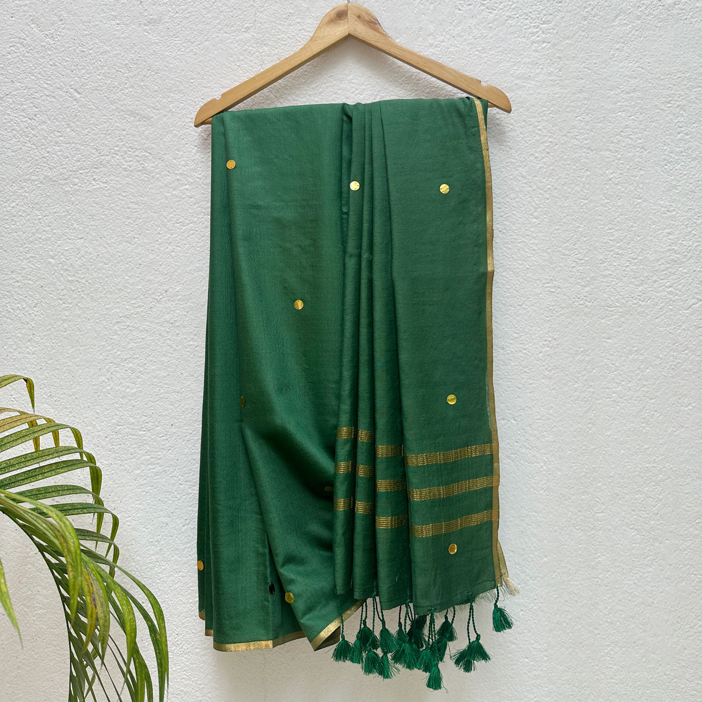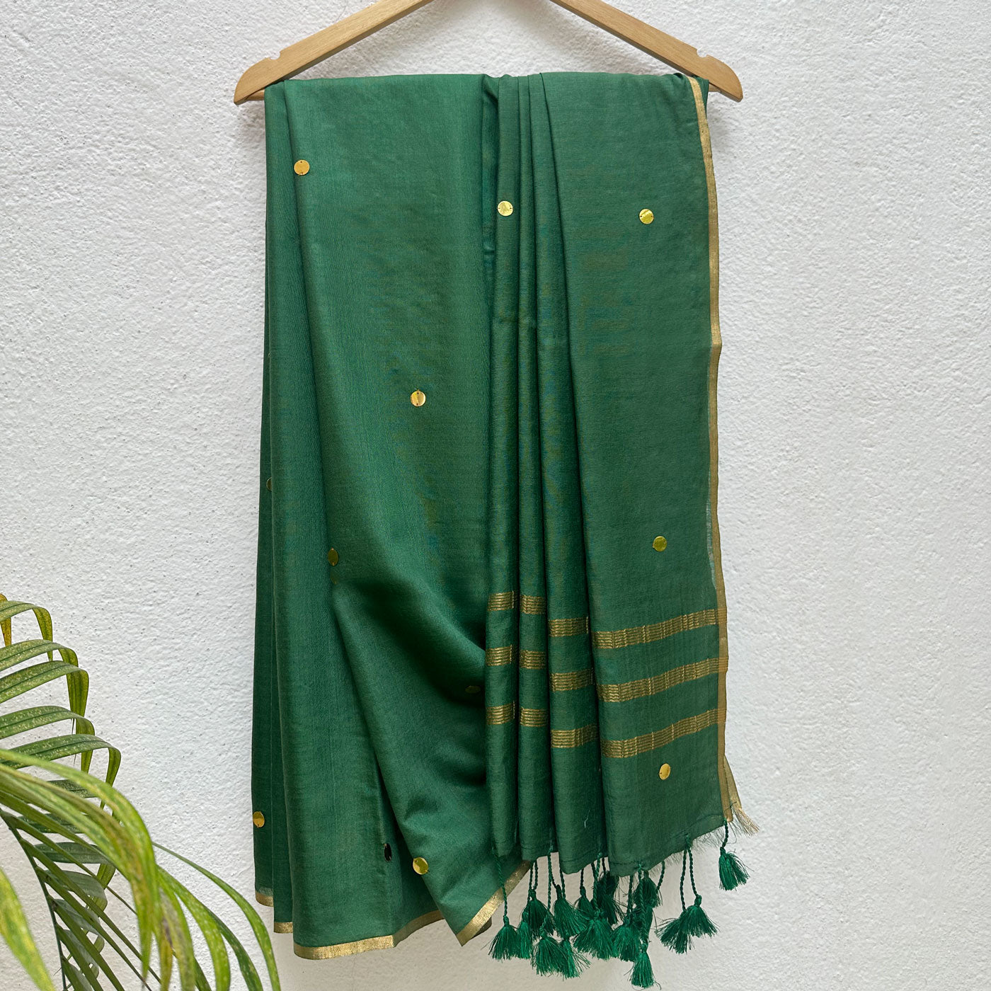 Be the star of the show in the vibrant Janam Taara Cotton Silk Sequins Saree! Made from luxurious cotton silk, this saree sparkles with dazzling sequins and a delicate gold trim. Its playful tassels add a quirky touch, making it suitable for any occasion, whether it's a party or a laid-back hangout. With its captivating colors, this saree is sure to capture hearts (and turn heads)!