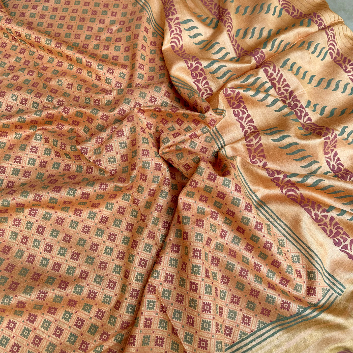 Kaveri Handblock Printed Moonga Silk Saree