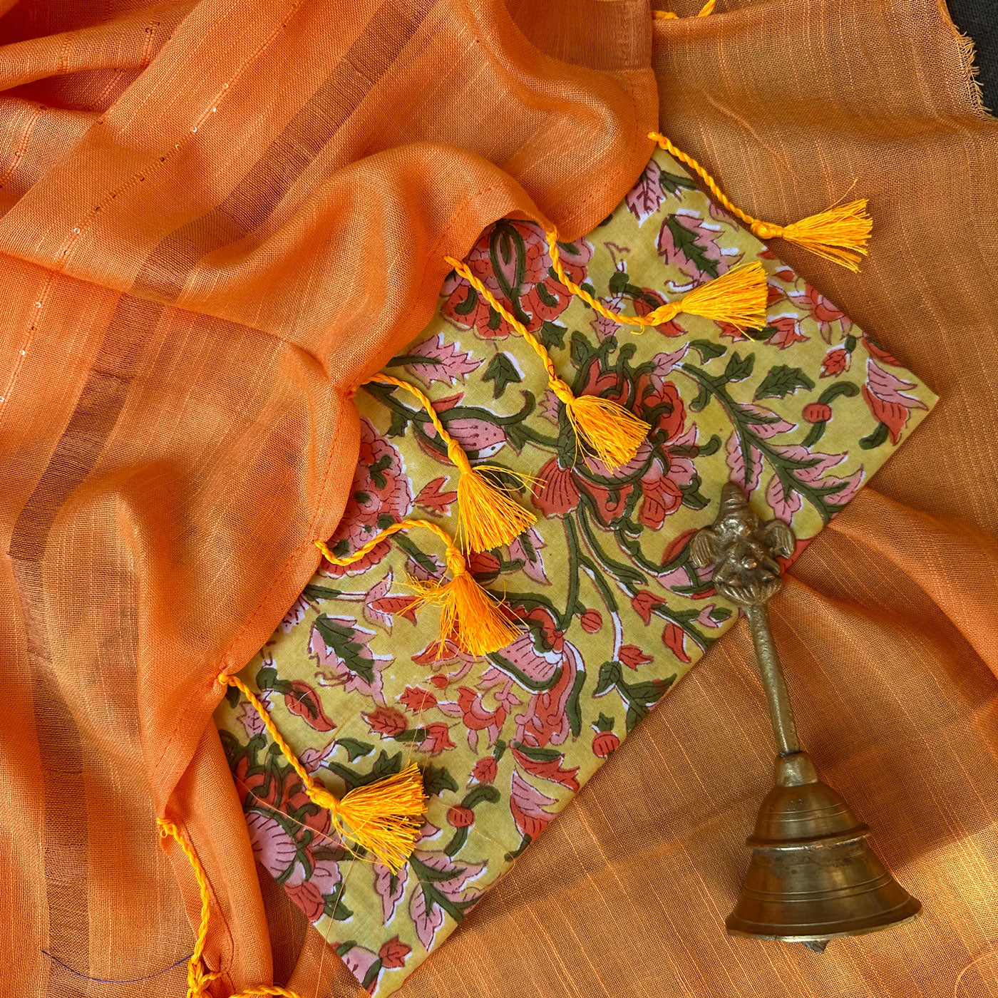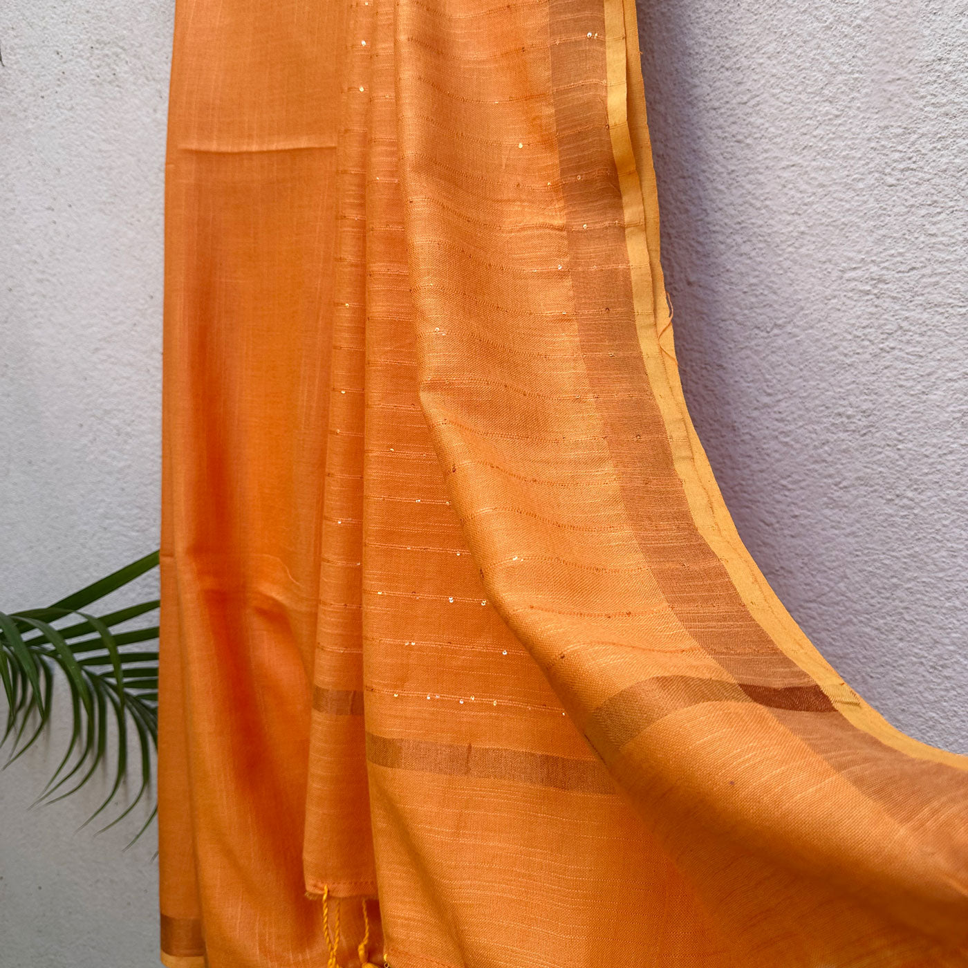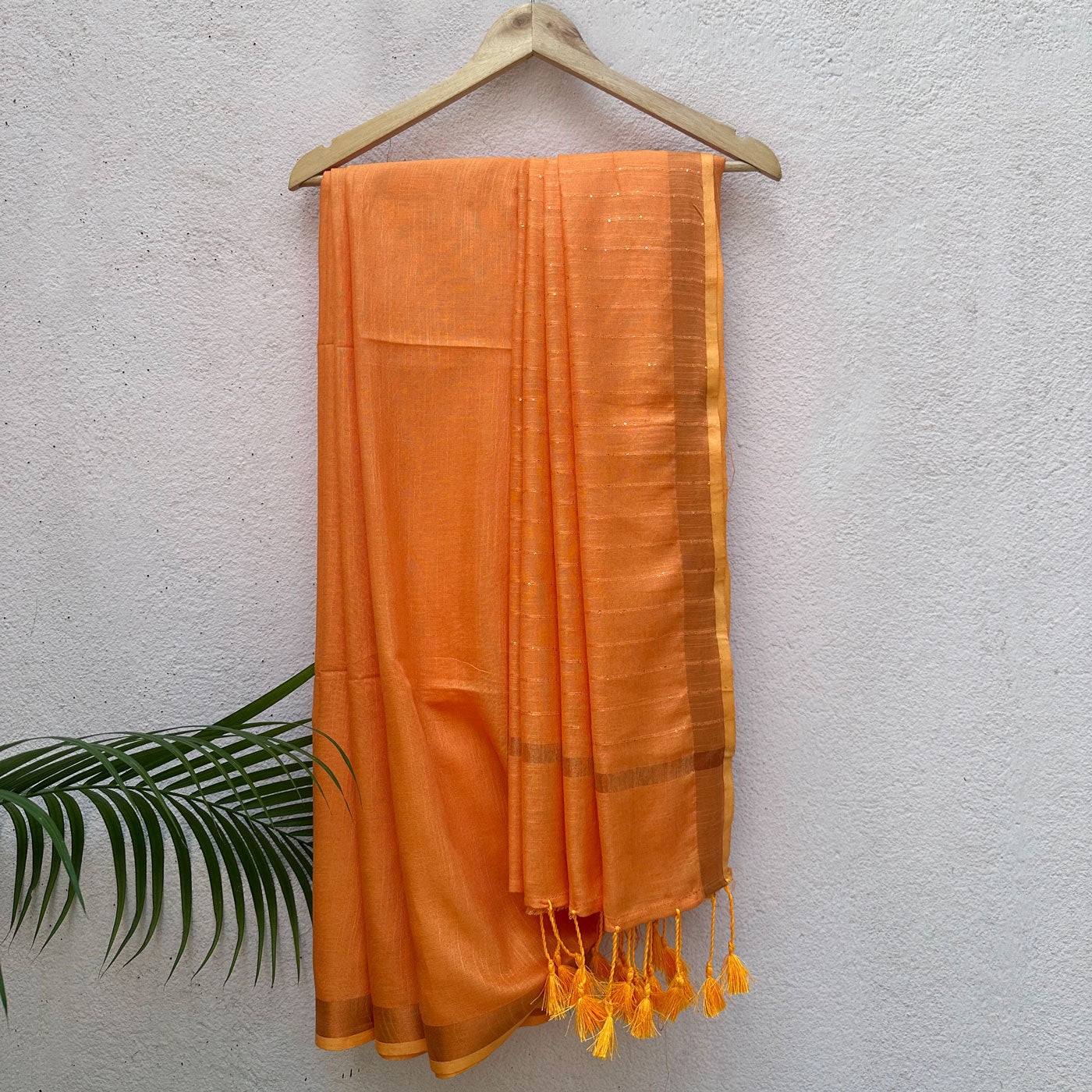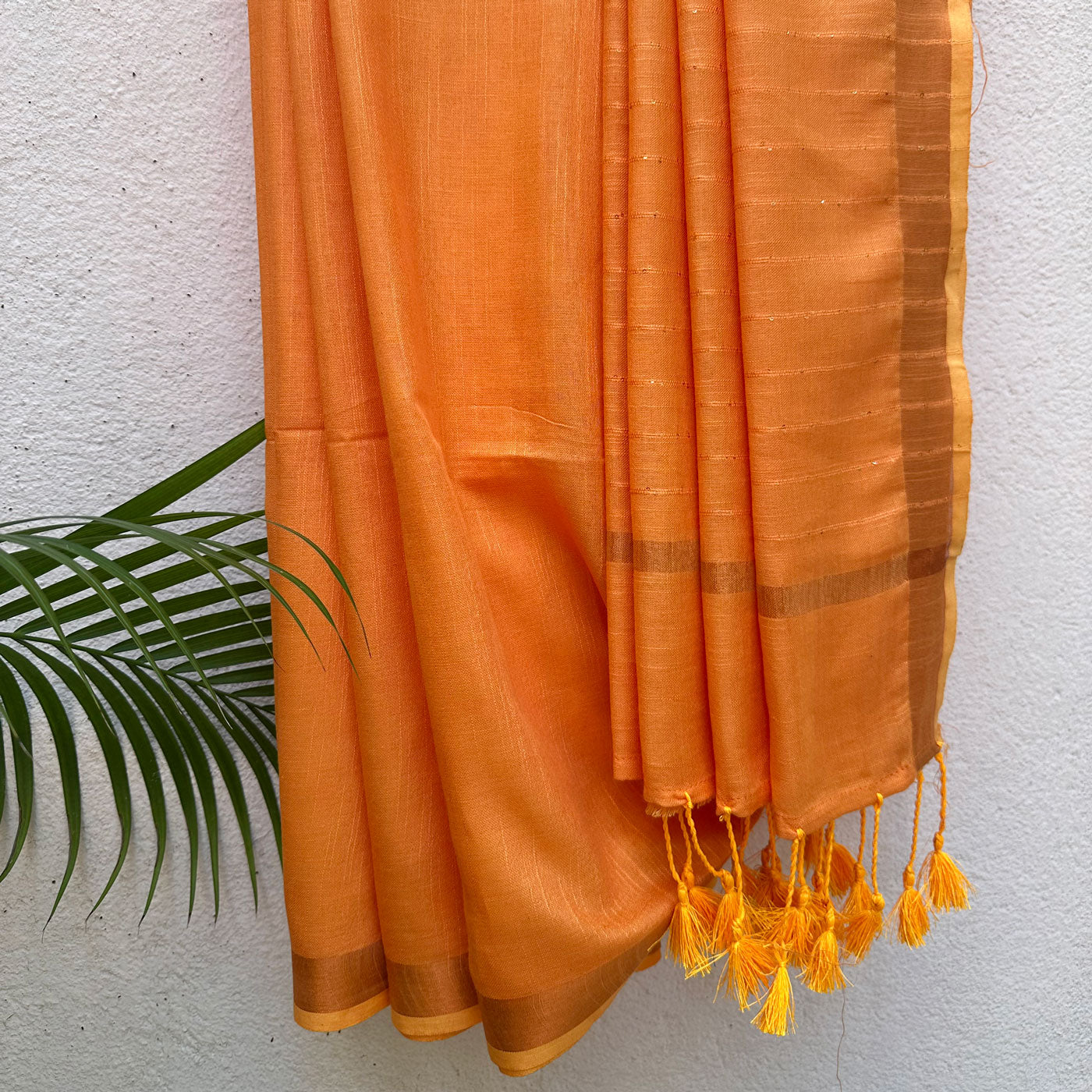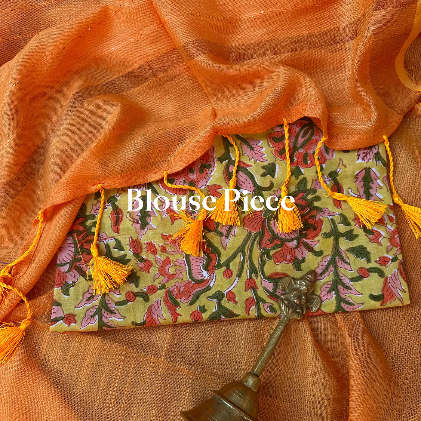 Brace yourself to embody the full summer feels with our stunning Kesariya Cotton Saree!