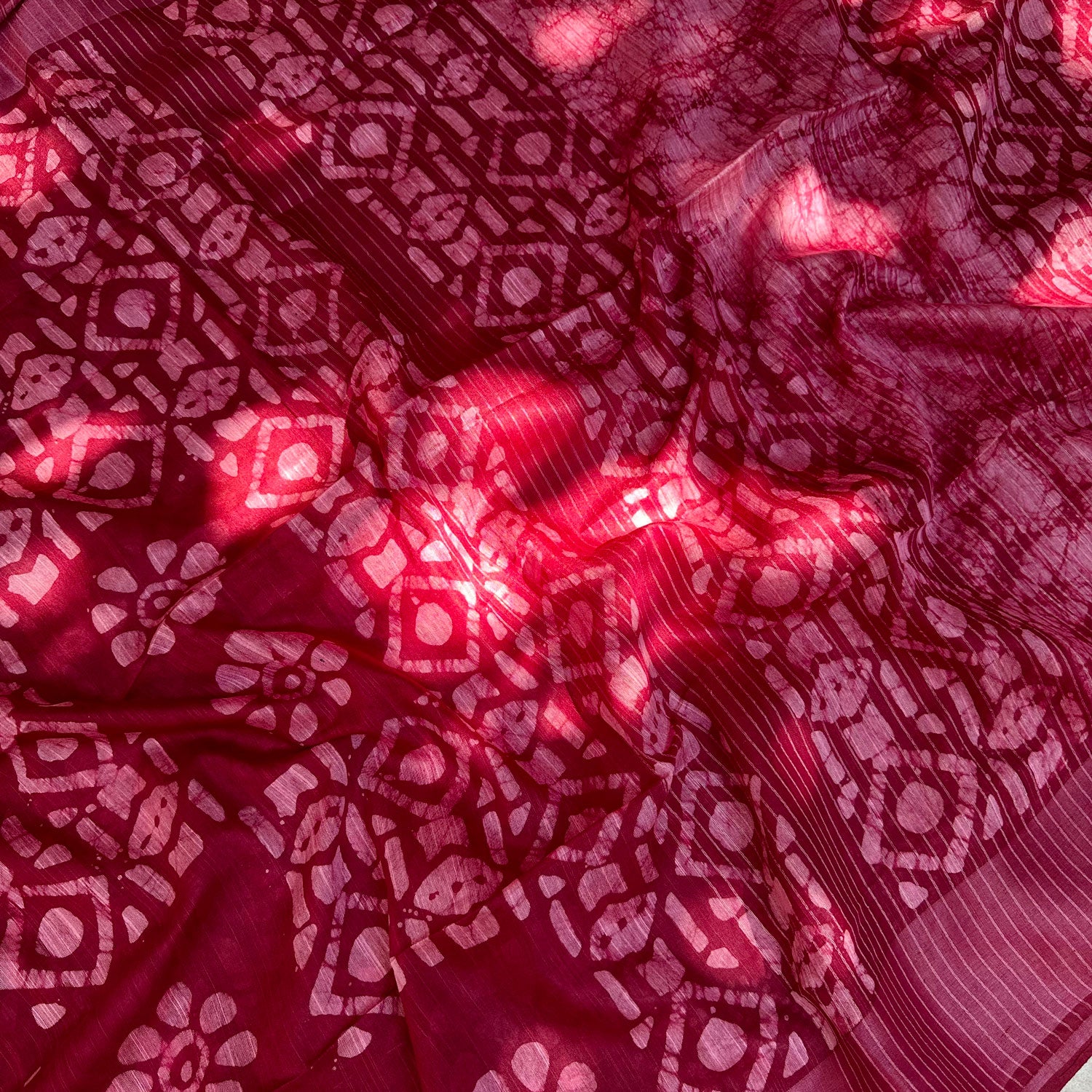 Discover the mesmerizing allure of the Molten Lava Batik Cotton Silk Saree, where traditional craftsmanship meets contemporary elegance. This stunning piece features intricate yarn-striped detailing on the pallu that commands attention and admiration. Woven from premium cotton silk blend, it drapes beautifully while maintaining comfort throughout your day. Perfect for weddings, festivals, or celebrations, this saree transforms any moment into a memorable occasion. Embrace timeless sophistication and make a bold fashion statement that reflects your refined taste and confident style.