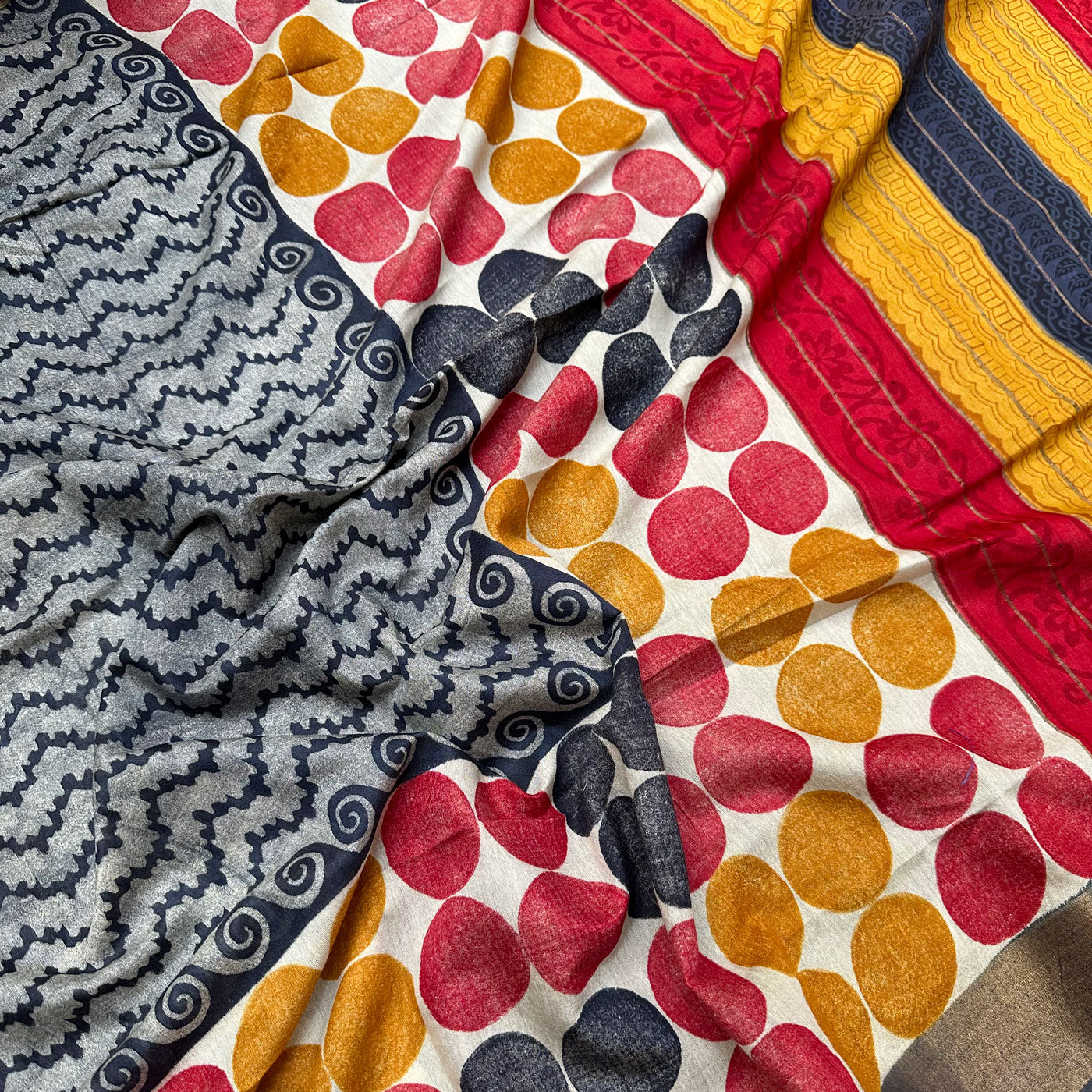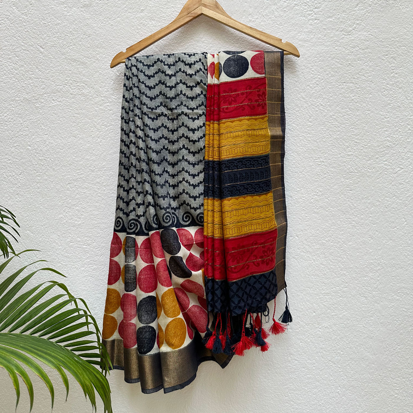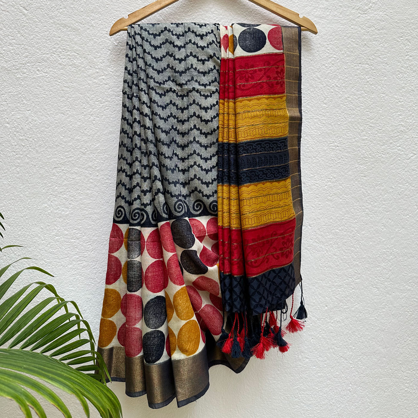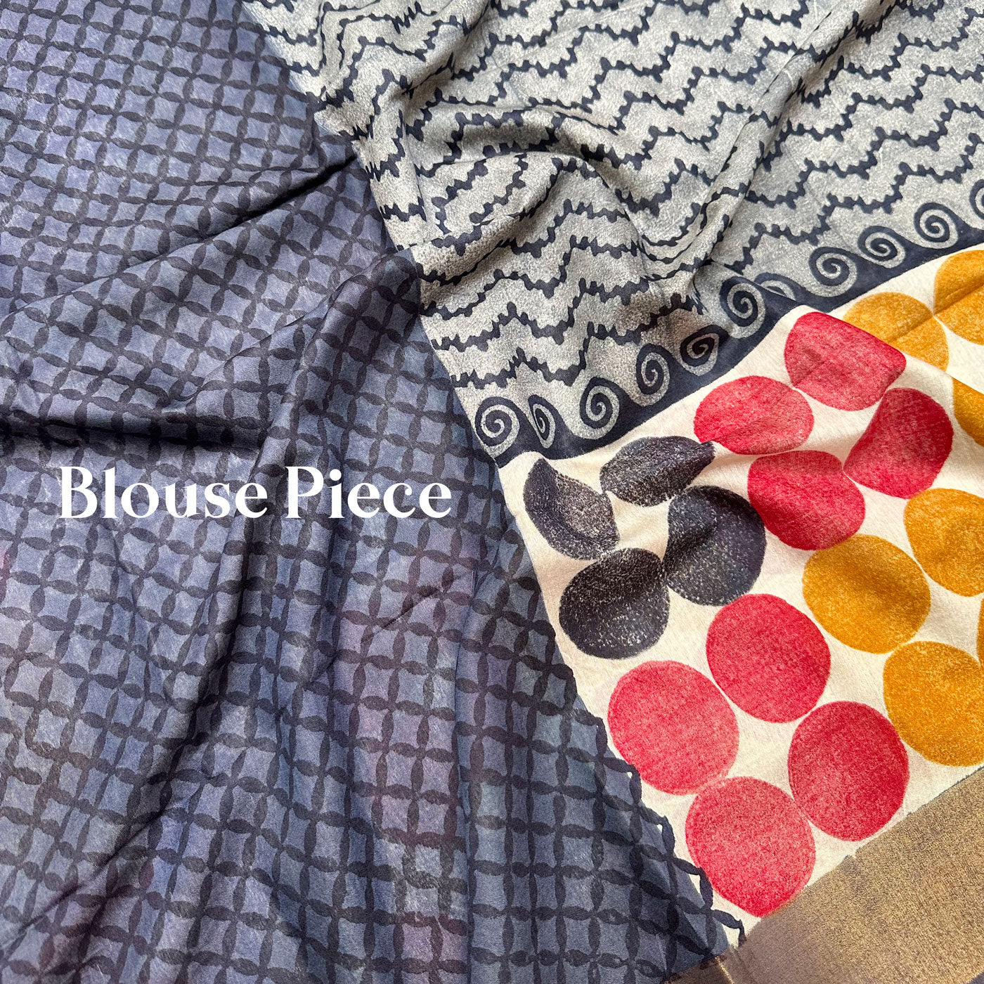 Moonlit Ocean Handblock Cotton Viscose Silk Saree