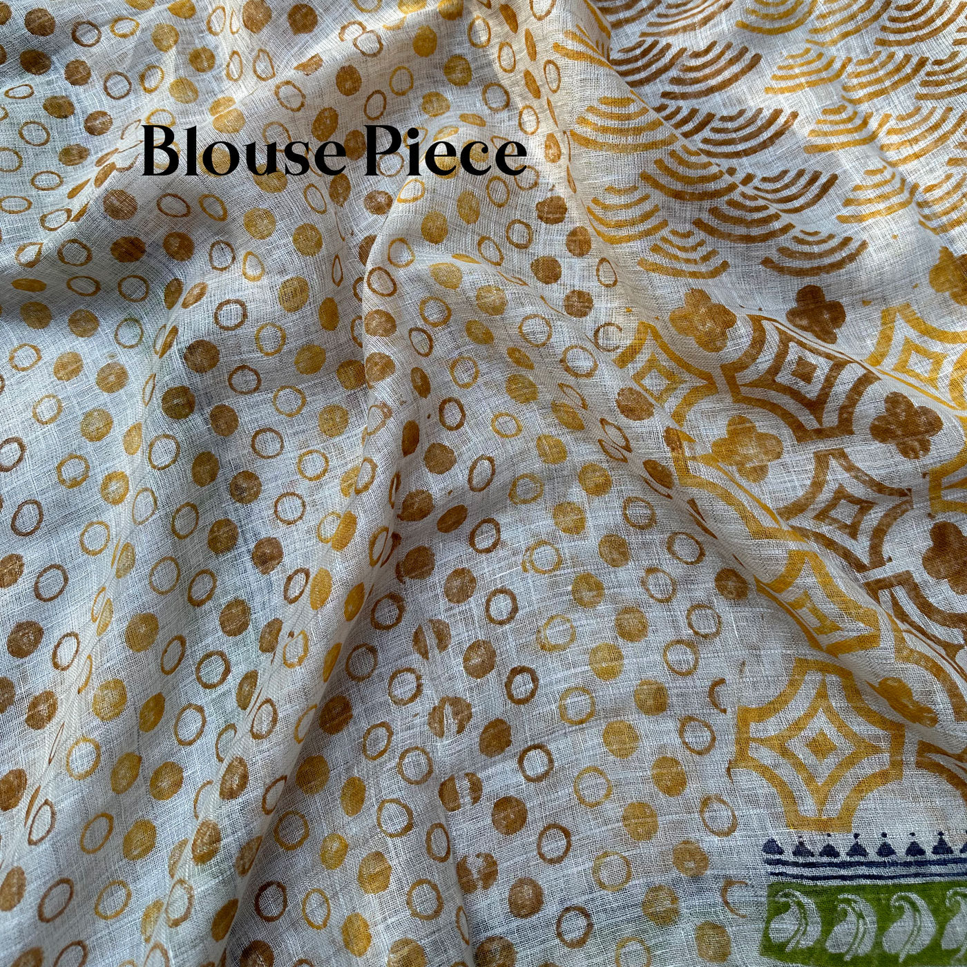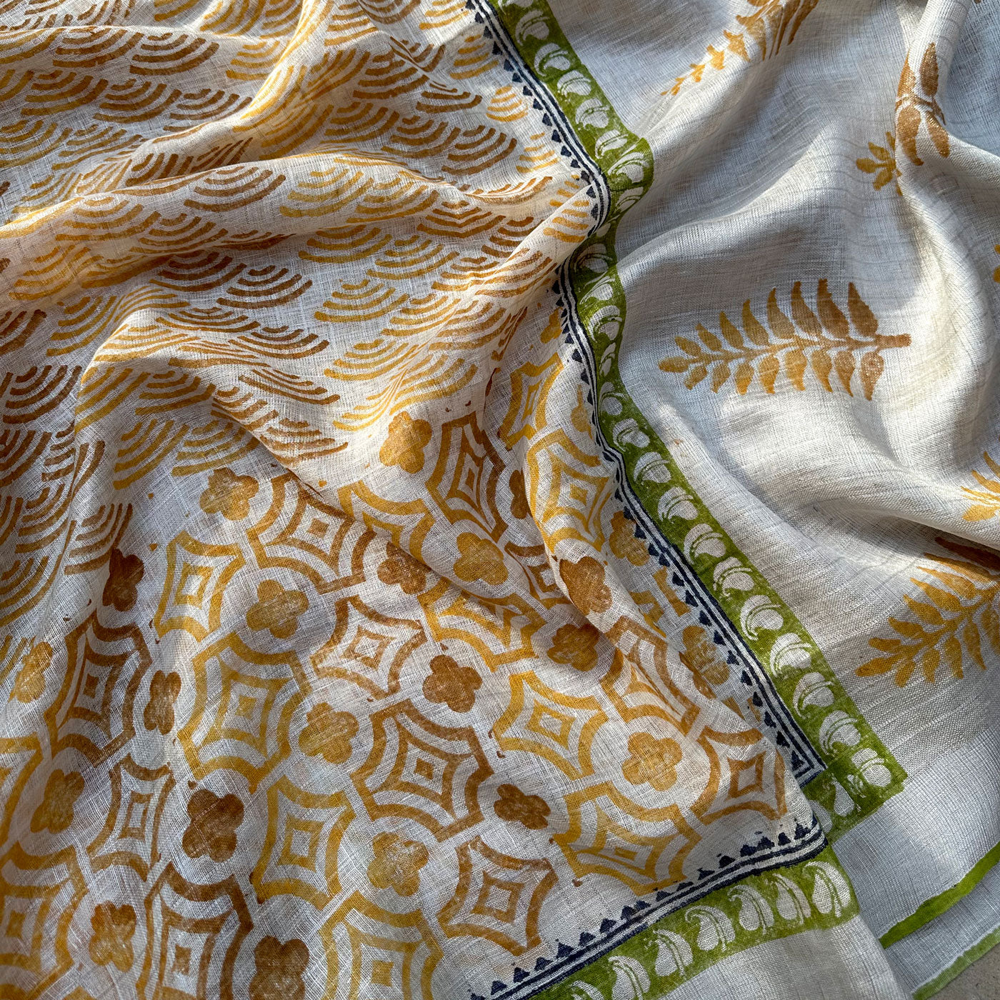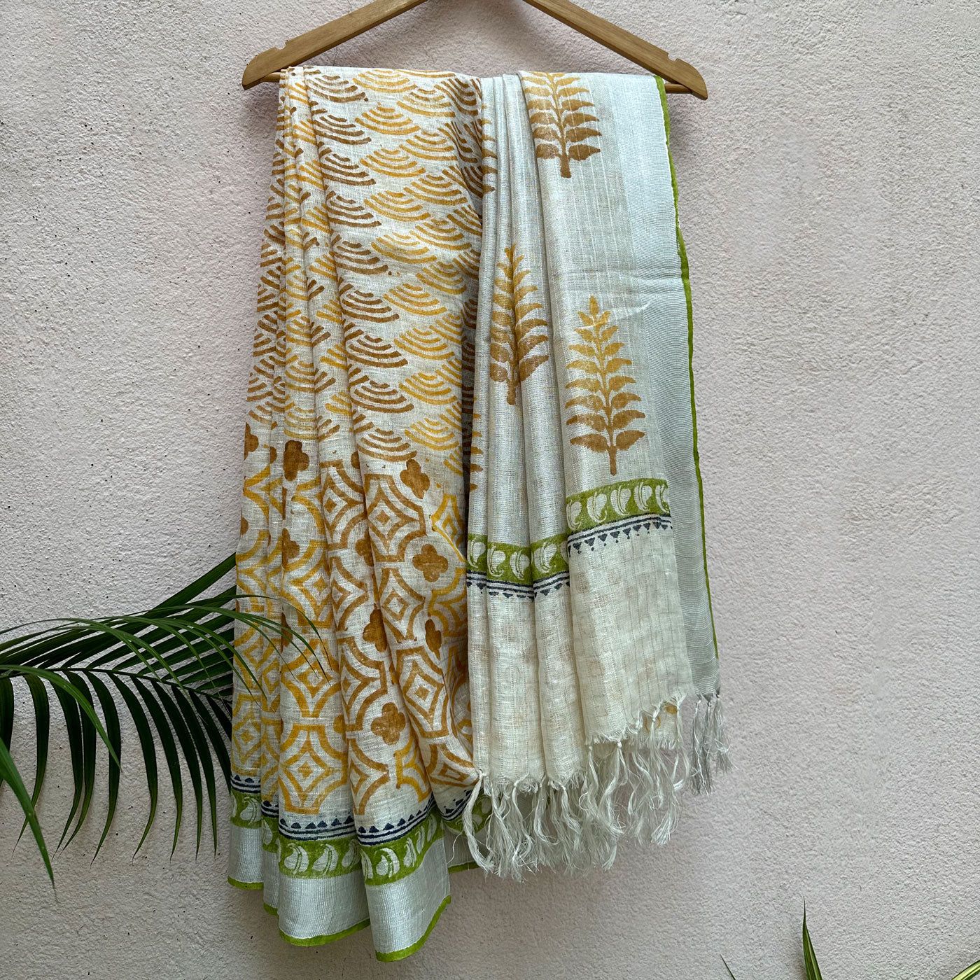 Experience sophistication in our collection of handblock-printed pure linen sarees.