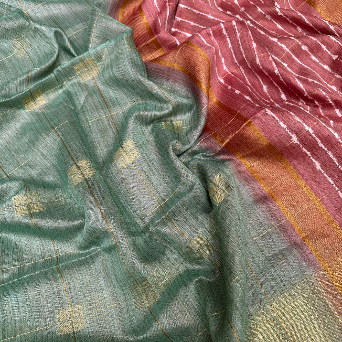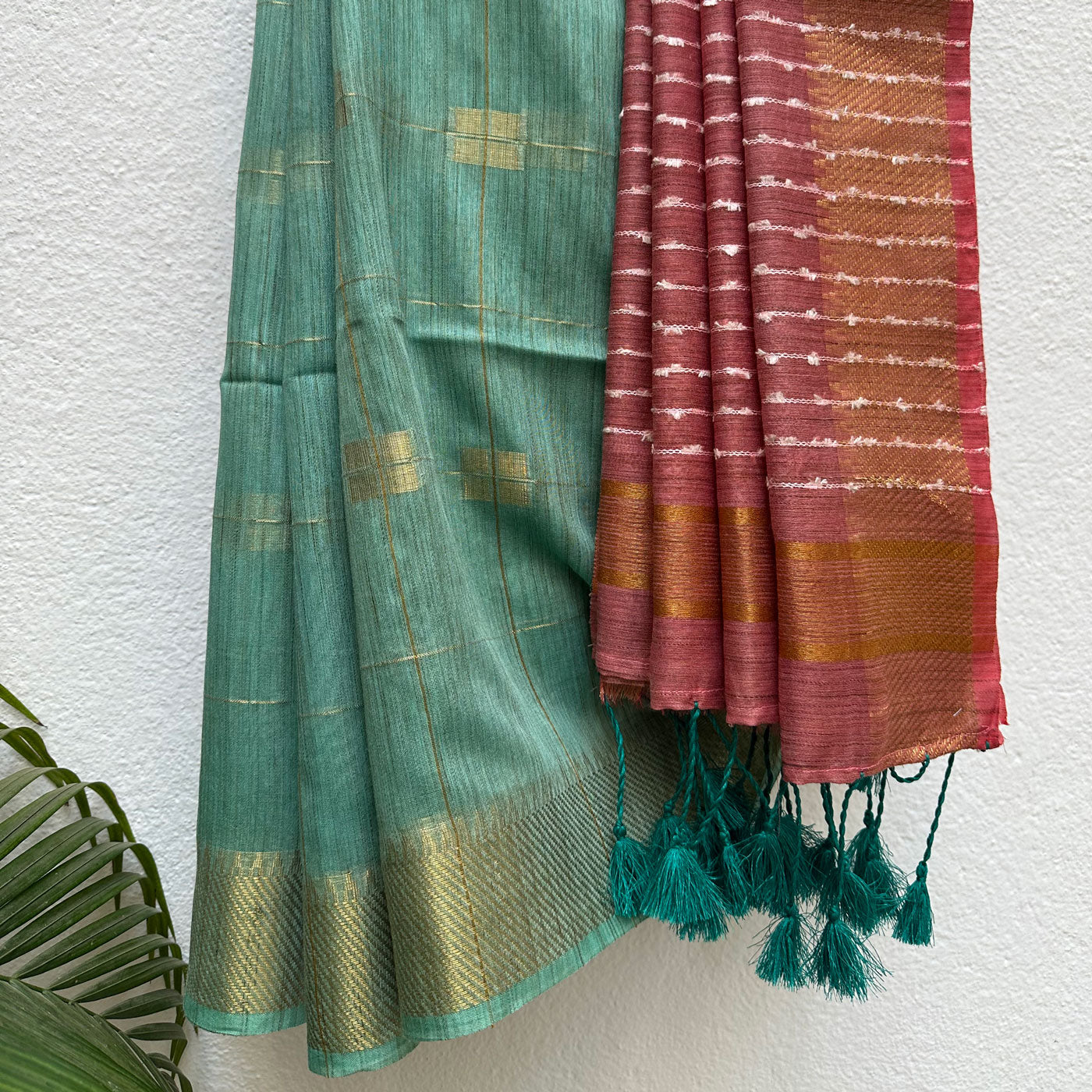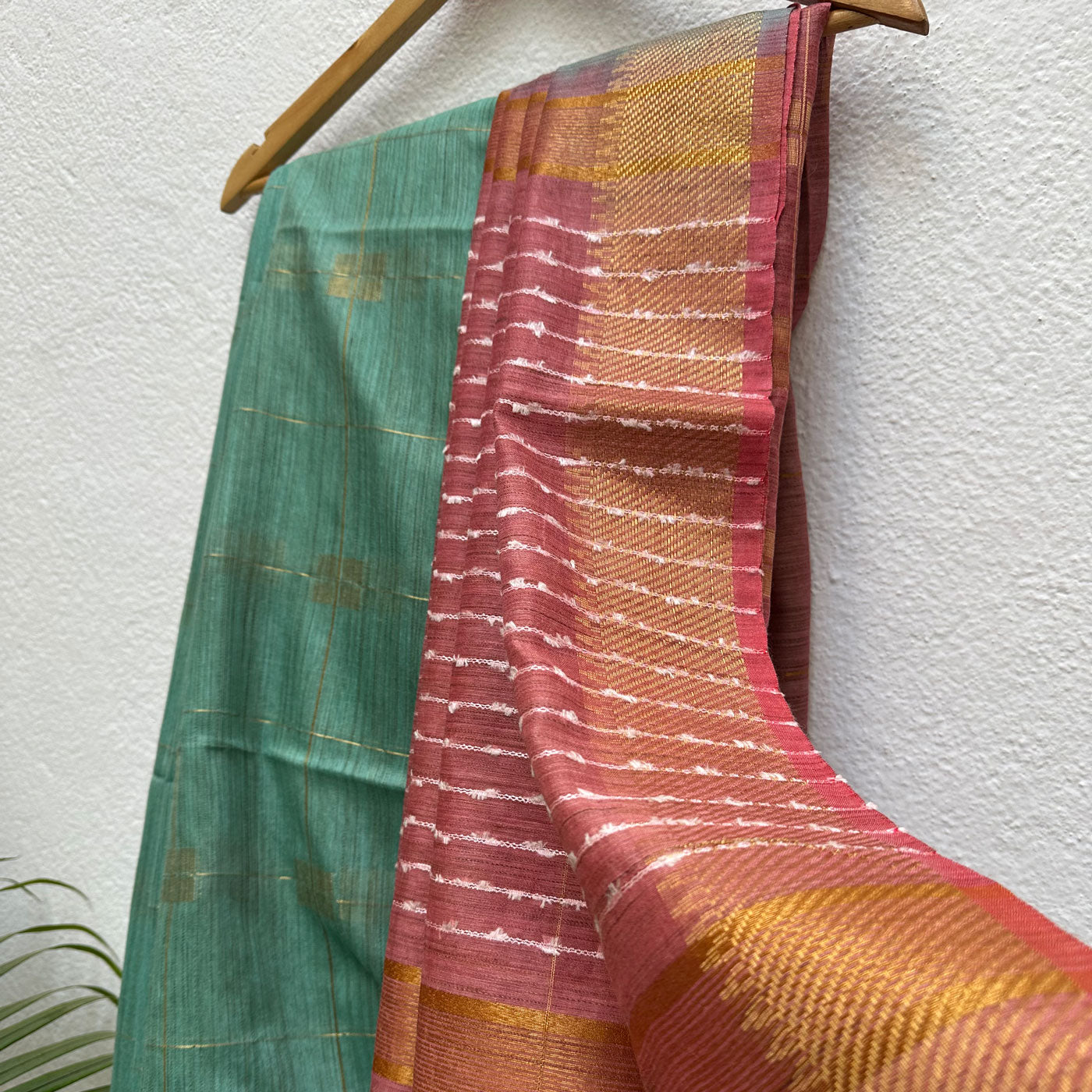Transform your wardrobe with the Neptune Green Cotton Bamboo Silk Saree, part of our Zarinama Collection!