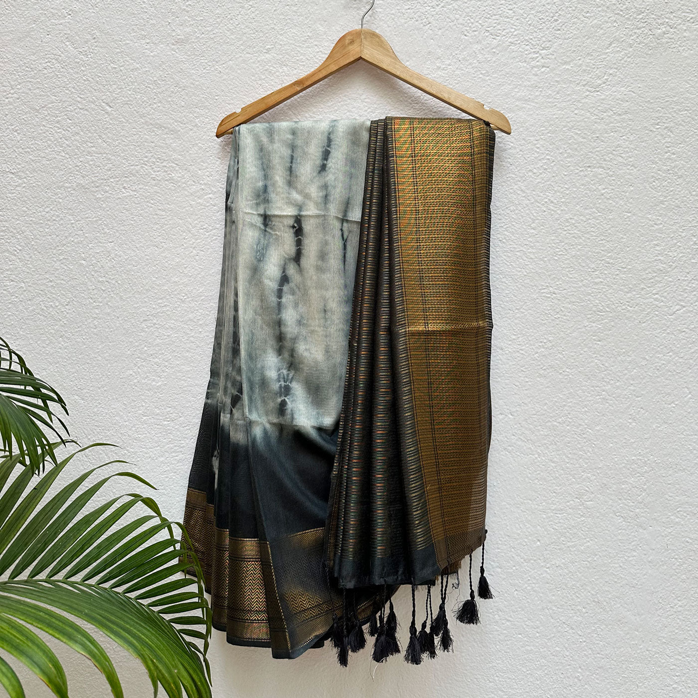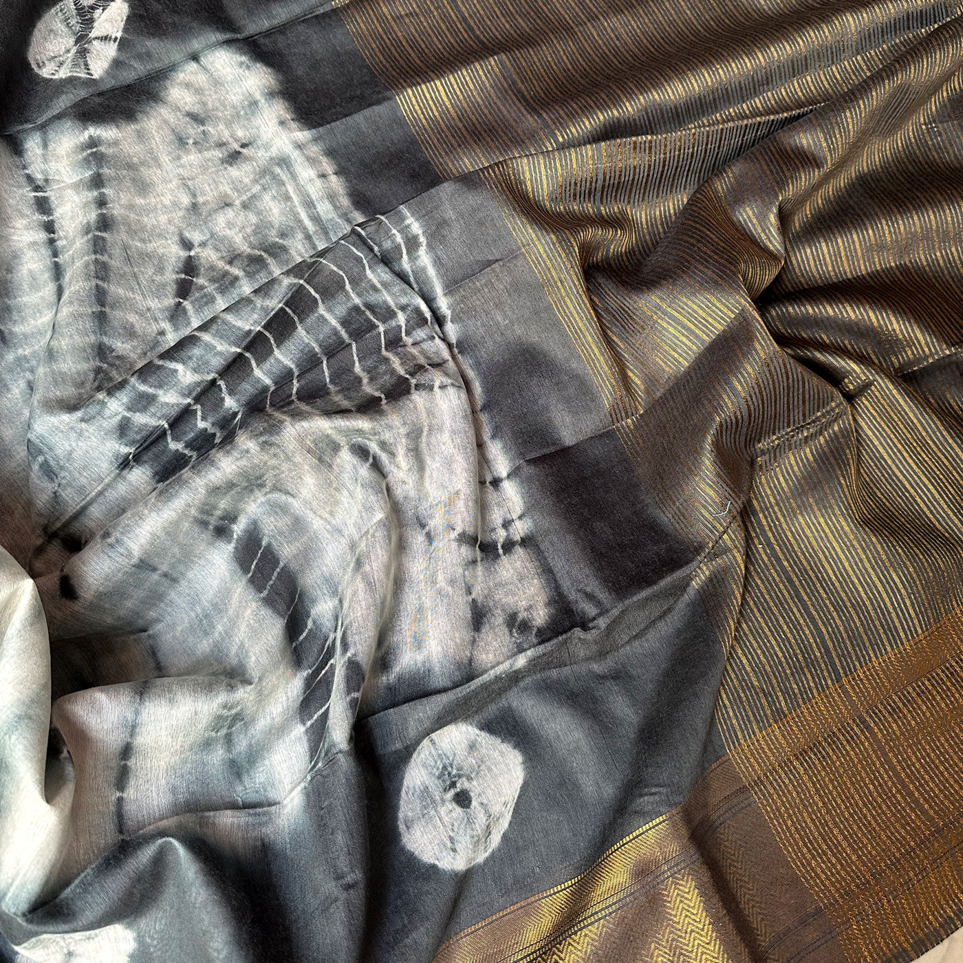 Outer Space Shibori Bandhani Cotton Silk Saree