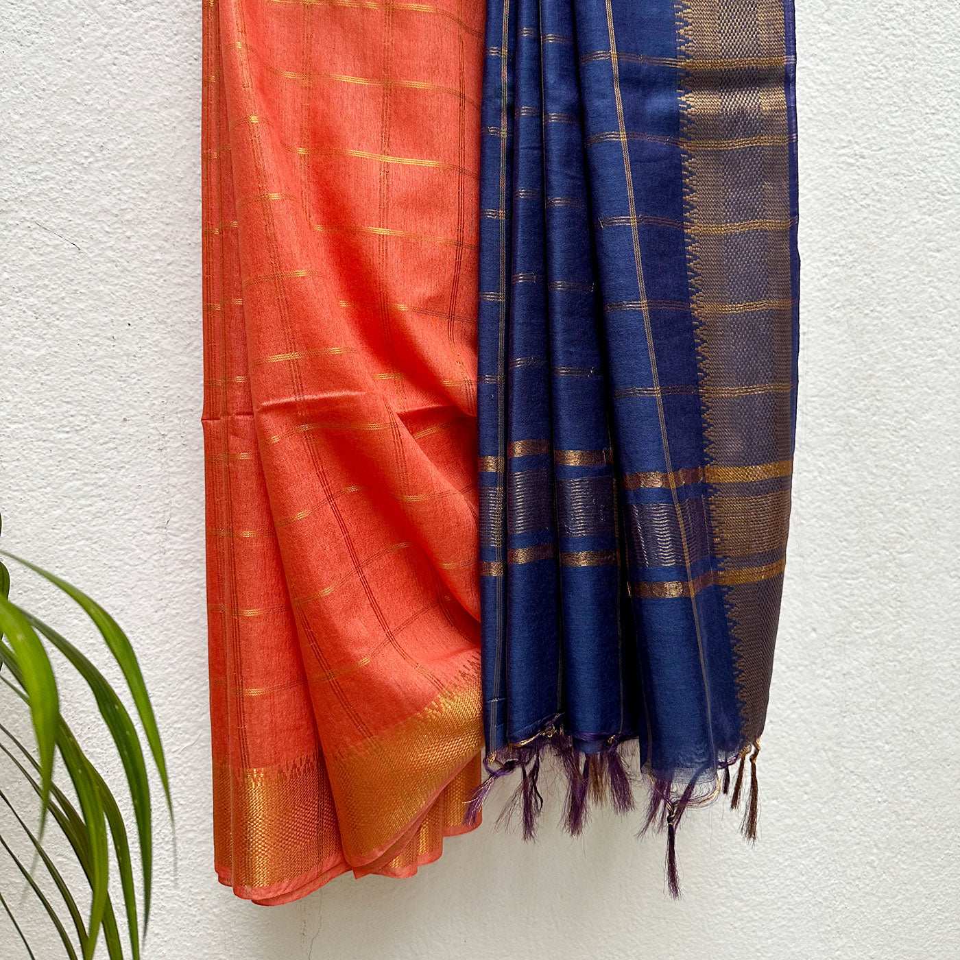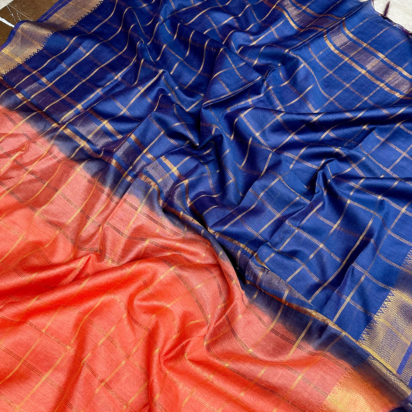 Embrace the ideal blend of fashion and comfort with detailed check-patterns, daring geometric border designs, and a contrasting pallu embellished in blue check patterns. Enhance your appearance with this sophisticated outfit that radiates a contemporary and everlasting allure. Treat yourself to its opulent and trendy vibe, and leave a lasting impression that cannot be ignored!