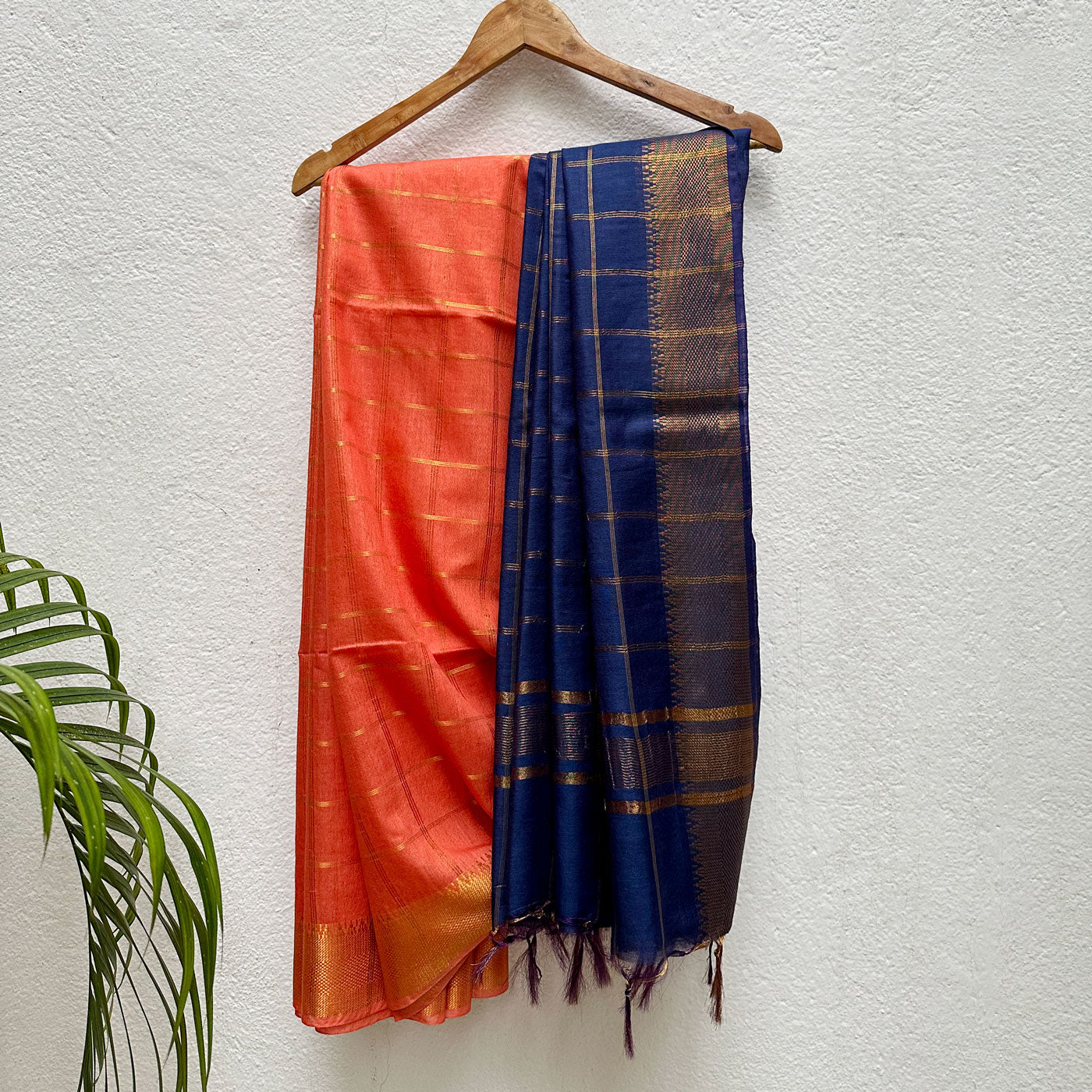 Tap into your full potential with our daring Peach Dust Cotton Silk Saree from the Zarinama line.