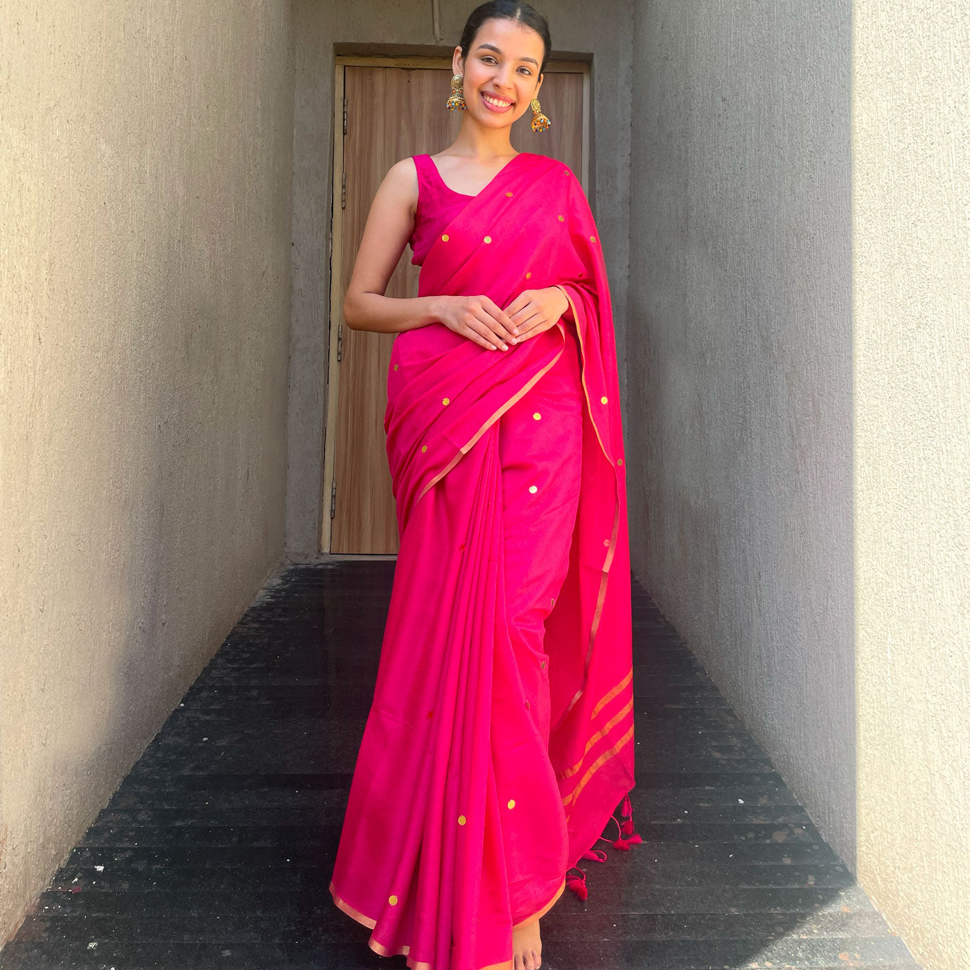 Add a touch of timeless elegance with the Pink Knock Out cotton silk sequins sarees from our Sitaara Collection.