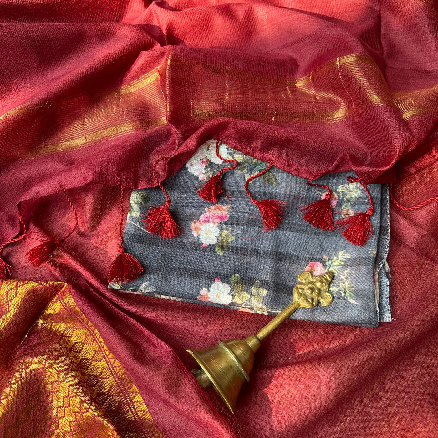 Prem Rang Cotton Silk Saree with Printed Blouse