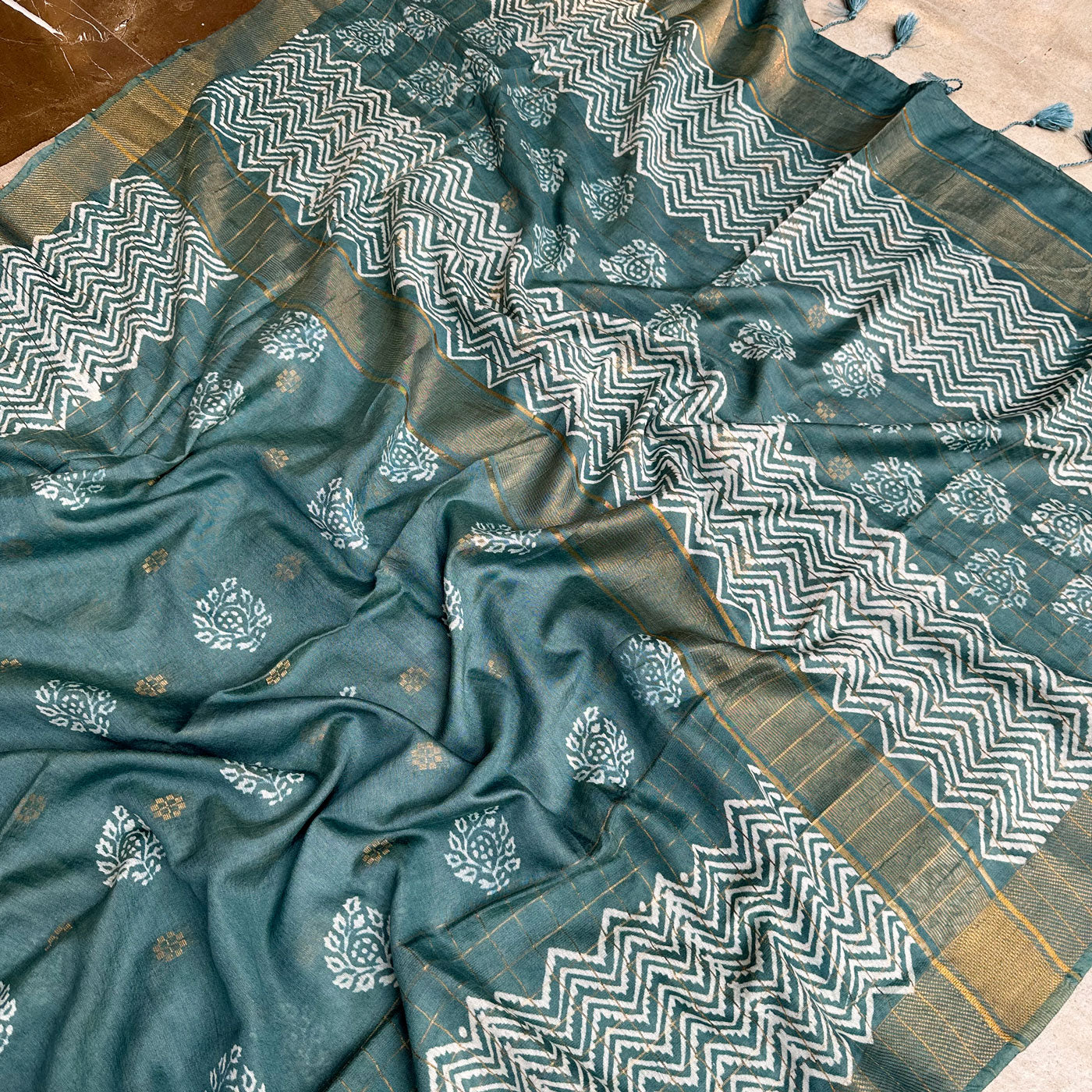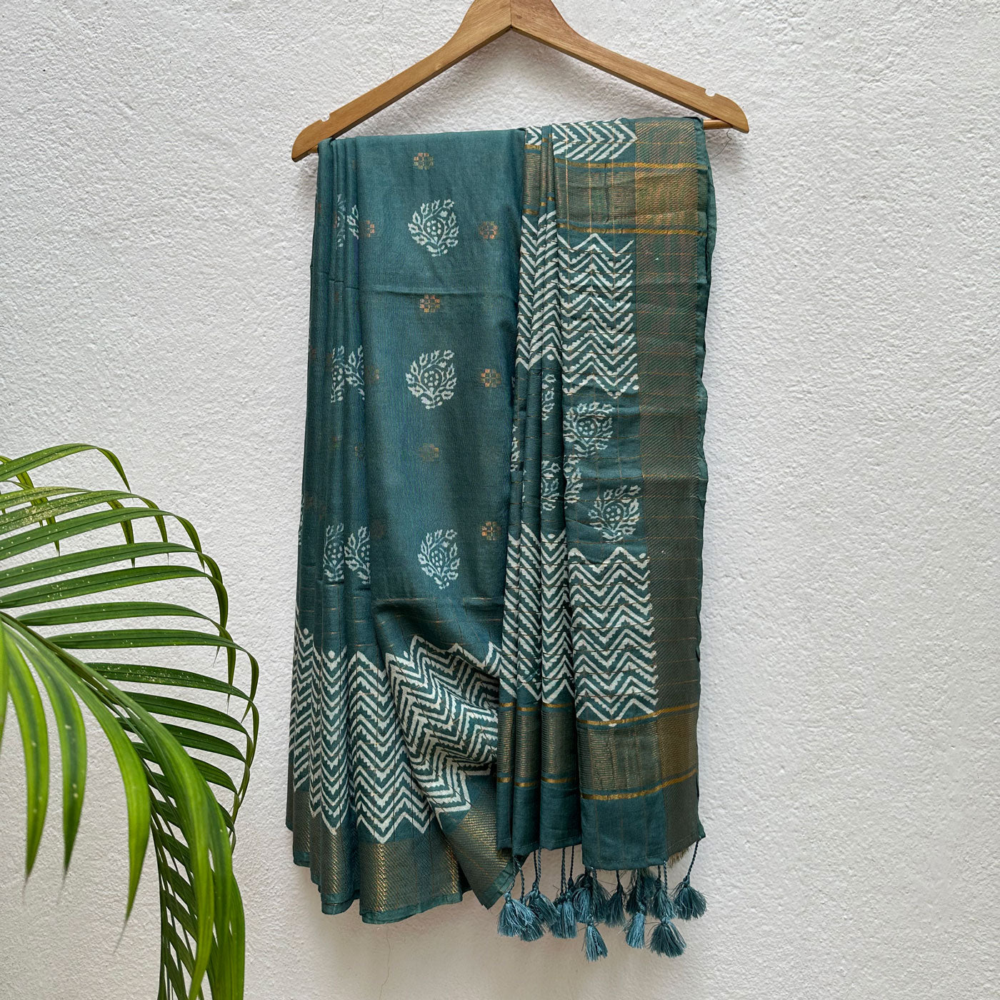 Rajnigandha Handblock Printed Cotton Silk Saree