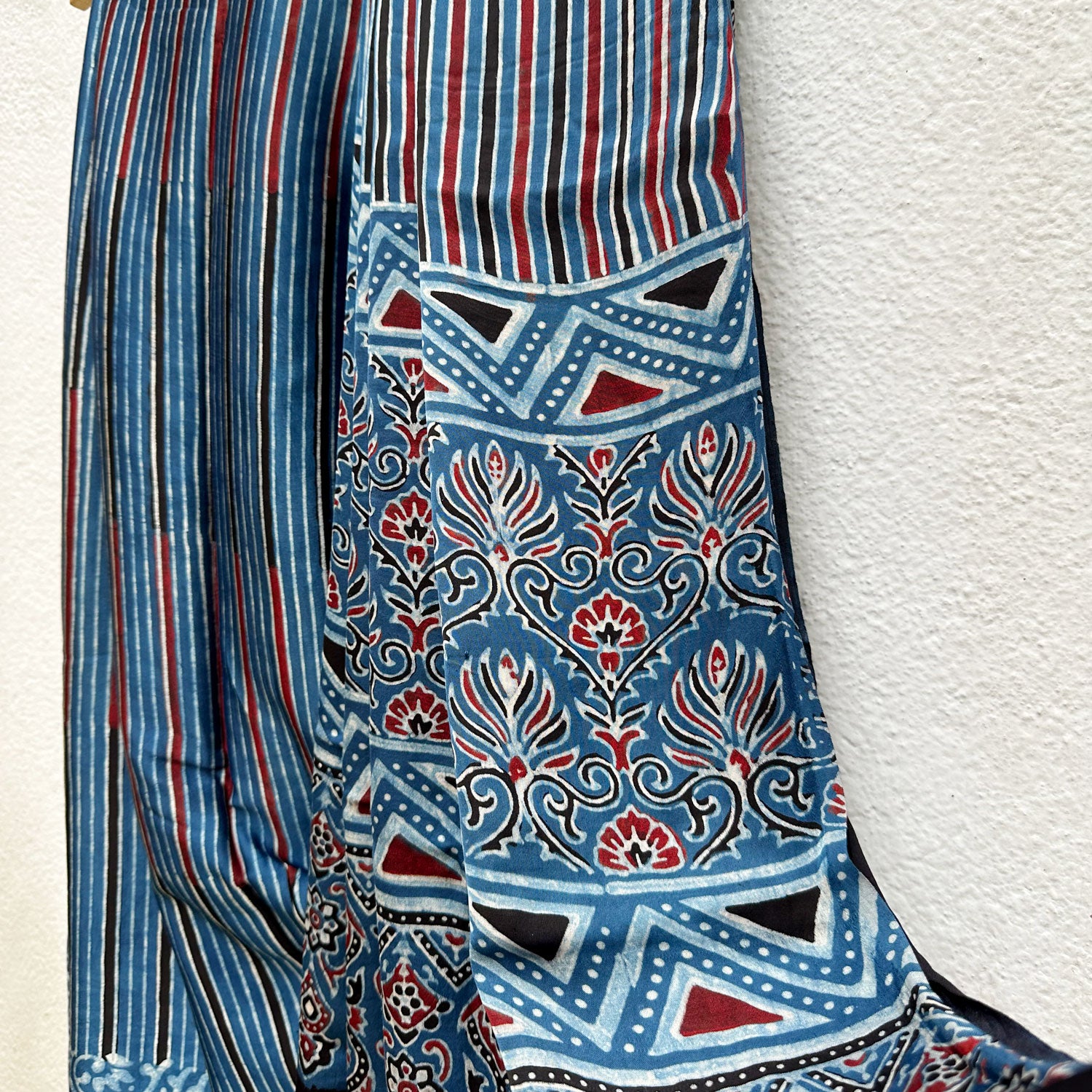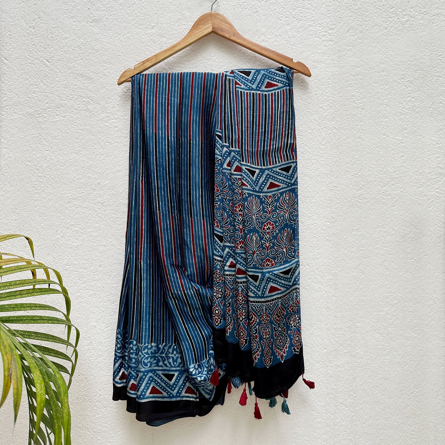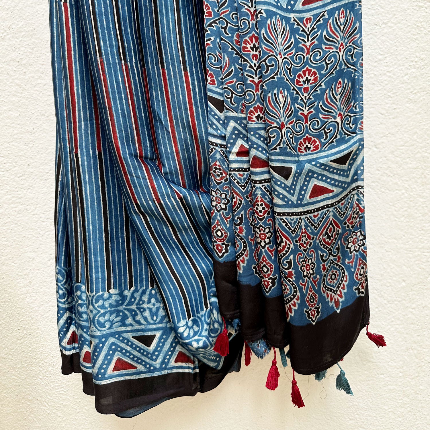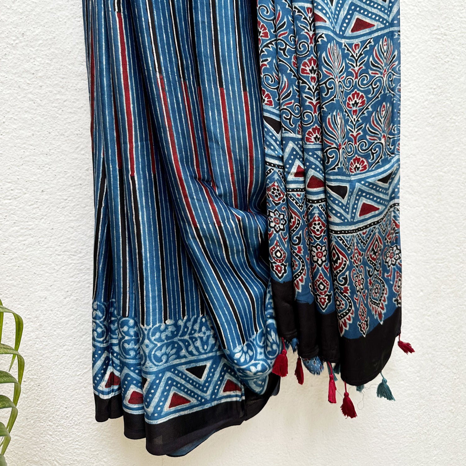 Rekha Handblock Printed Ajrakh Modal Silk Saree
