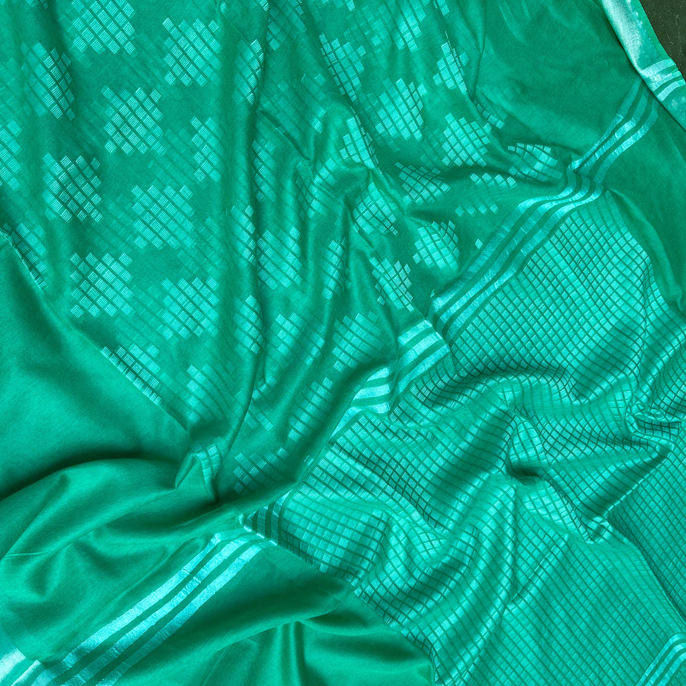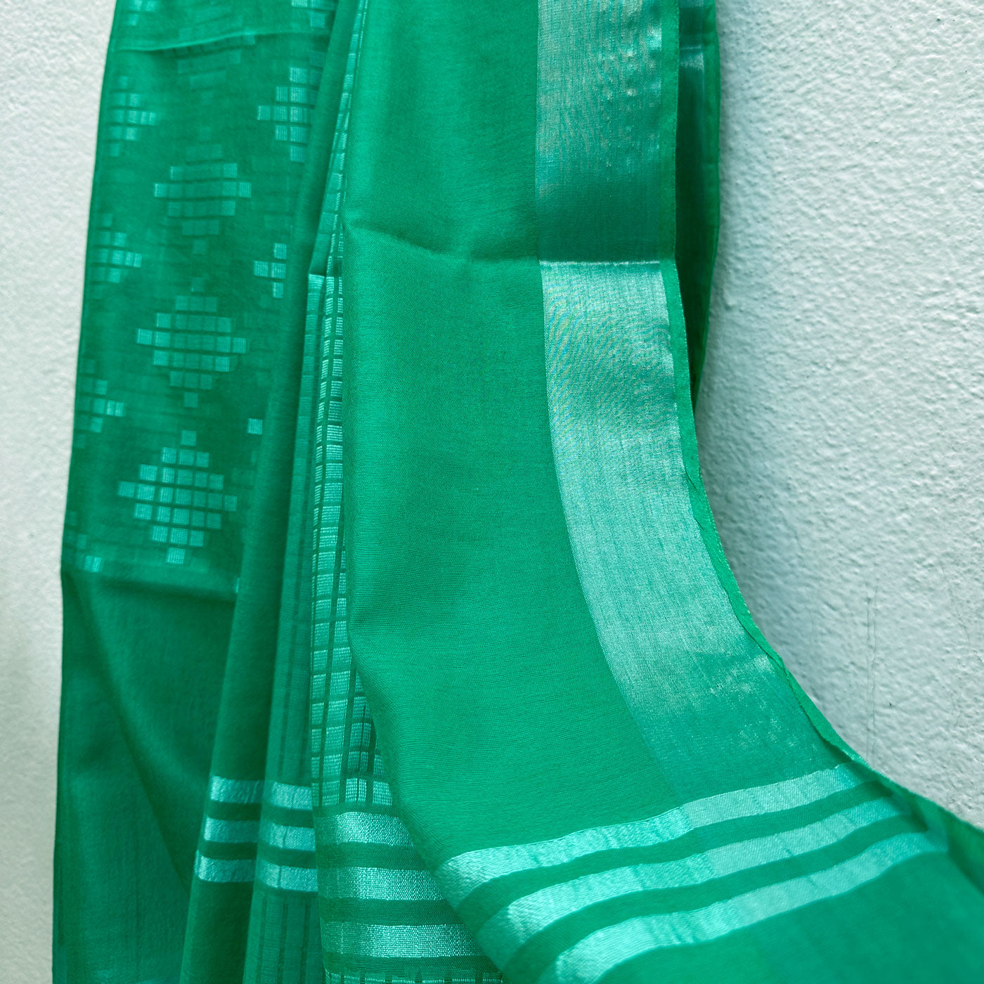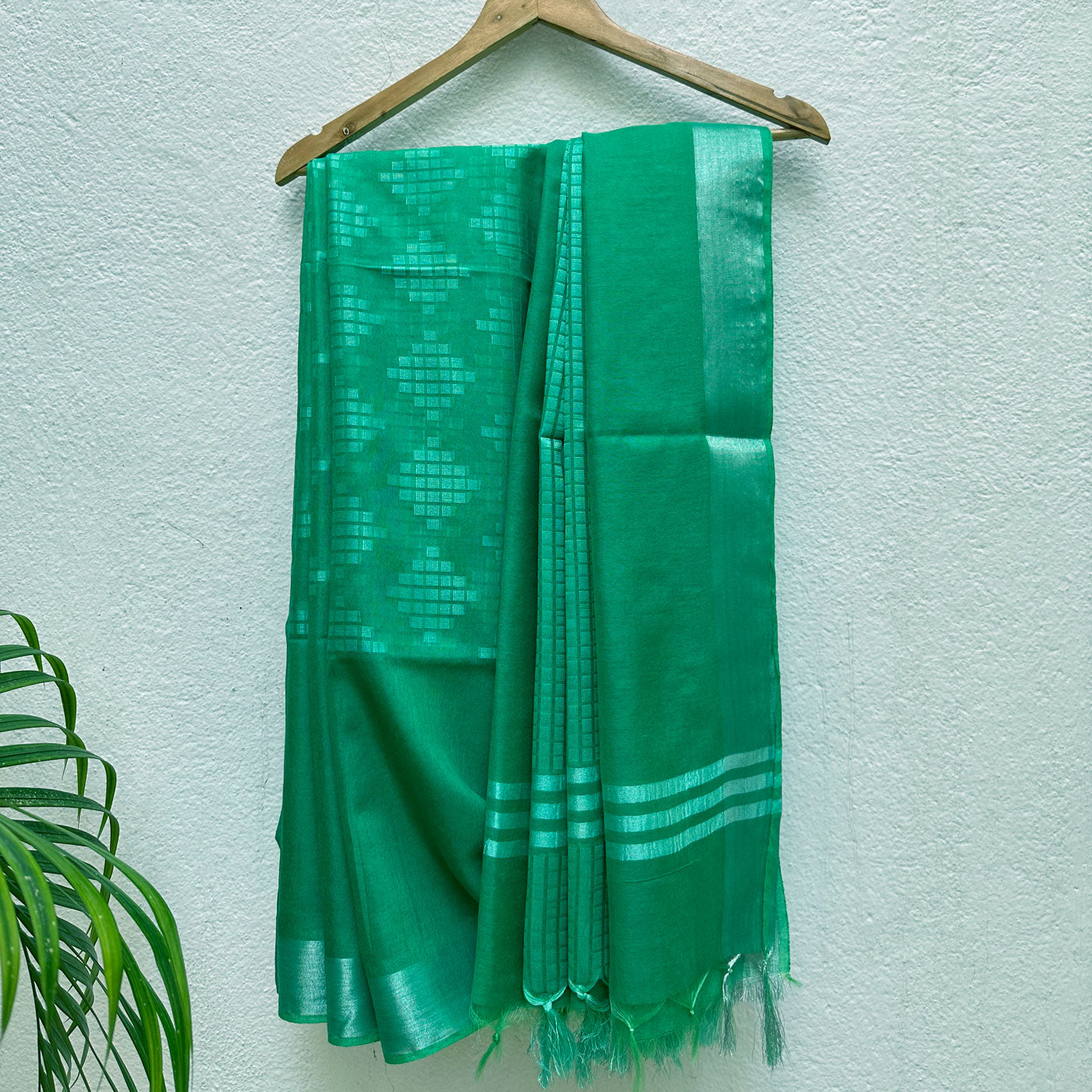 Create your own with our new addition of the Sea Green Cotton Silk sarees from Zarinama Collection.