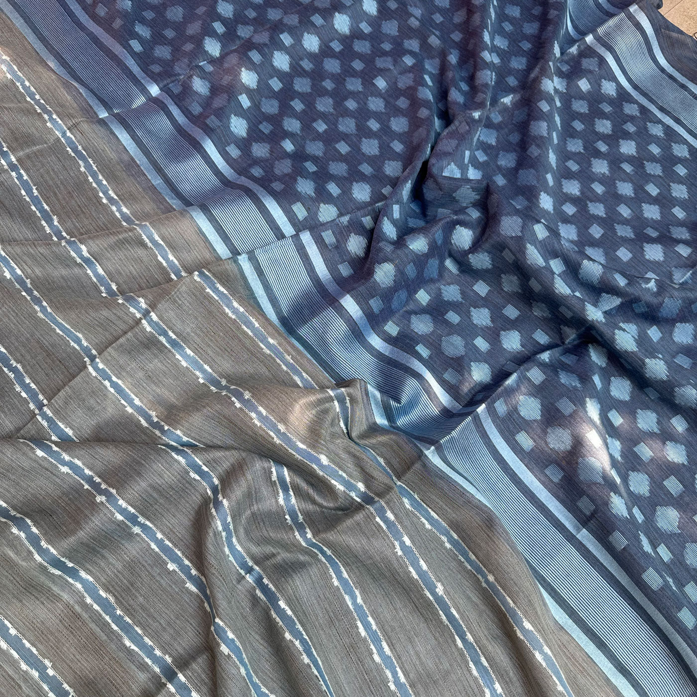 Upgrade your wardrobe with the Stonewash Cotton Bamboo Silk Saree, from our Zarinama Collection!