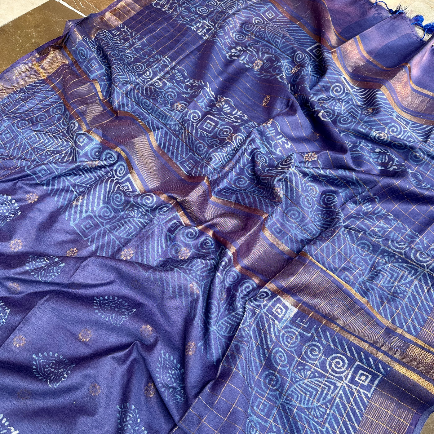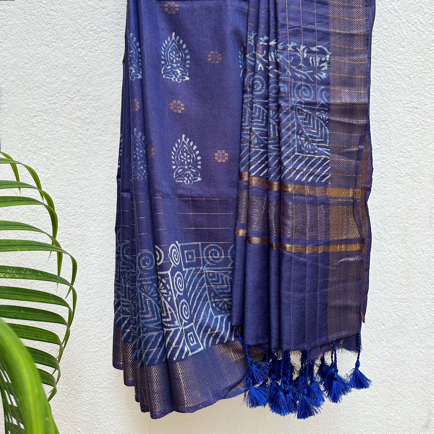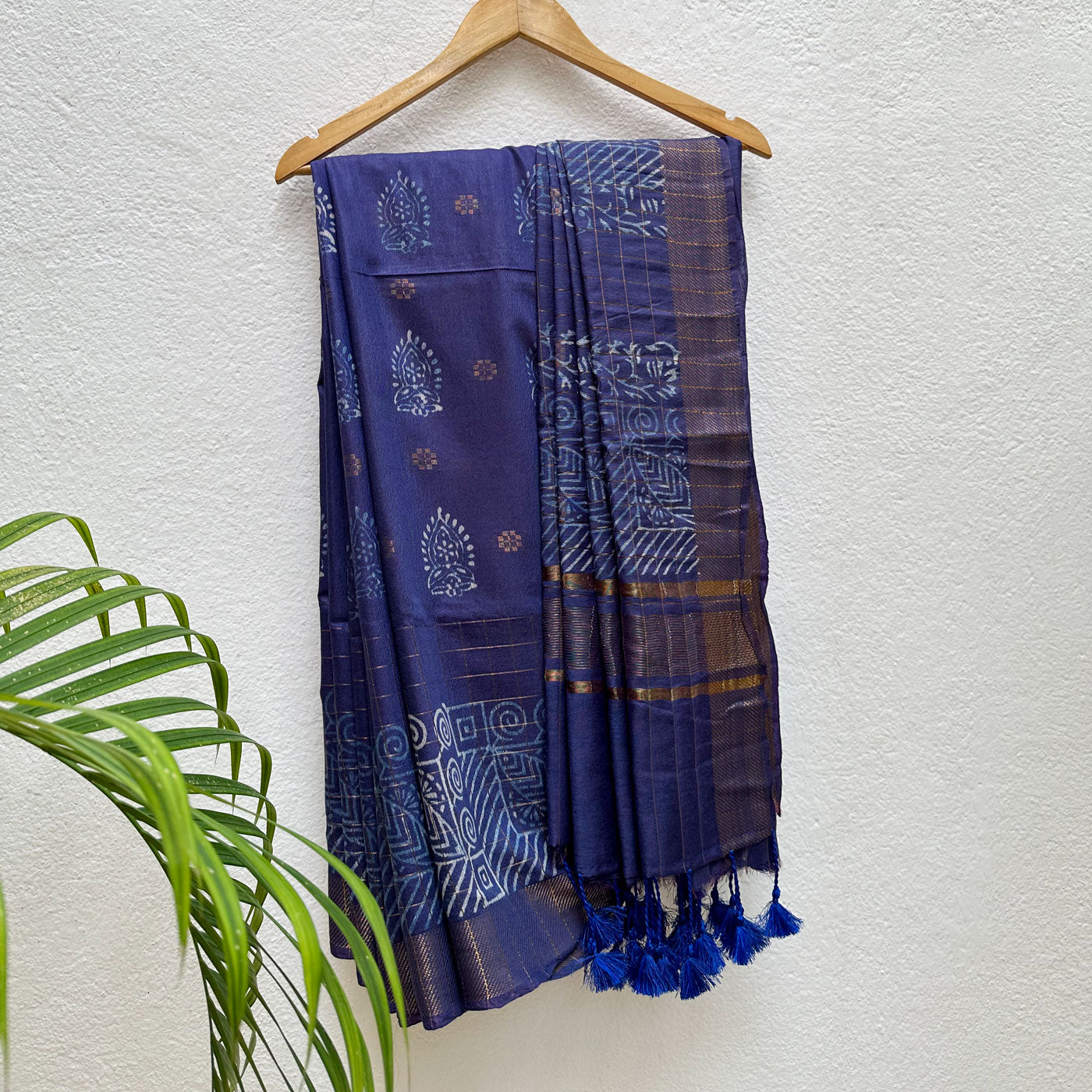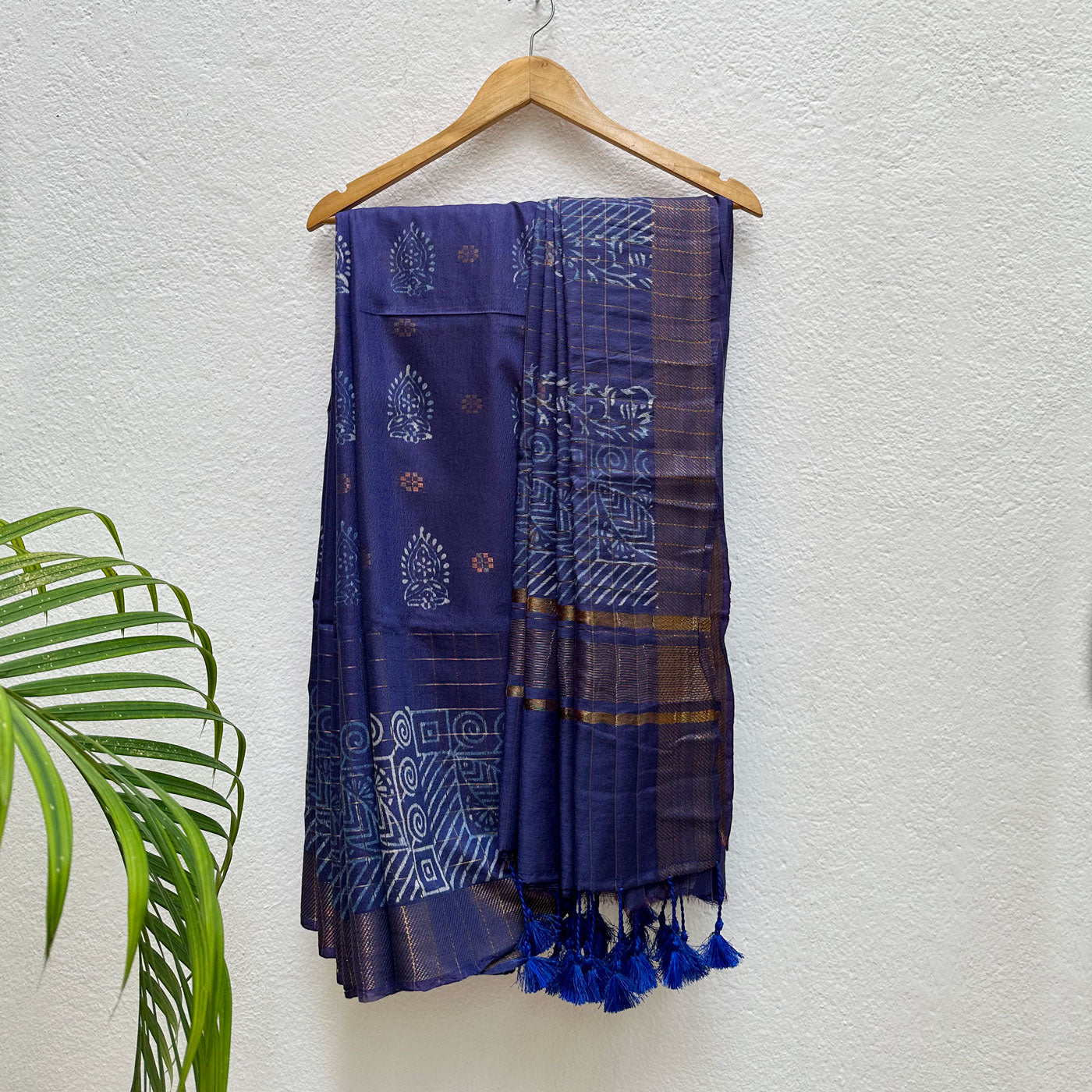 Suryamukhi Handblock Printed Cotton Silk Saree