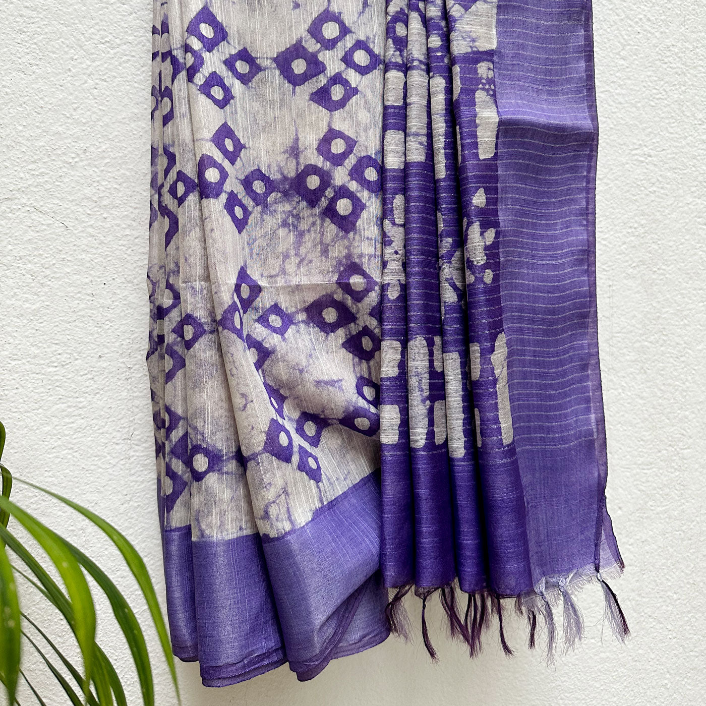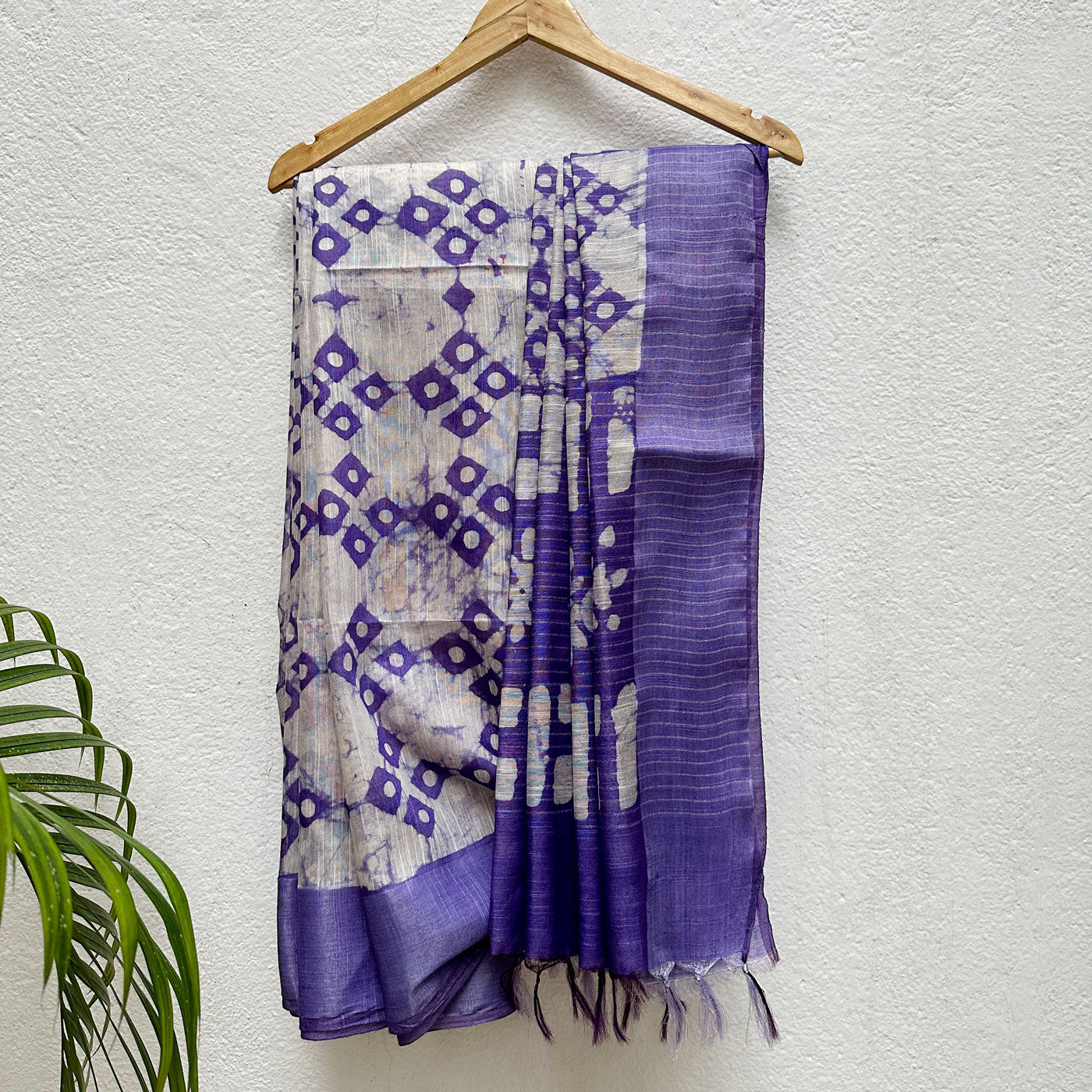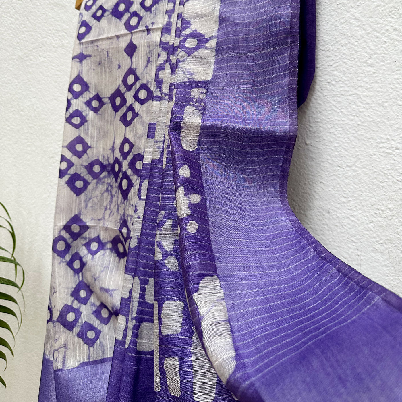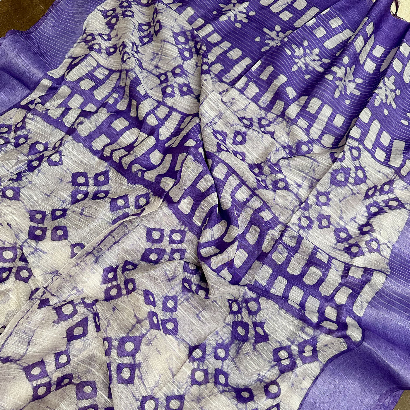 Start on a high note with our new addition of the Ultra Violet Cotton Silk Batik sarees from Zarinama Collection.