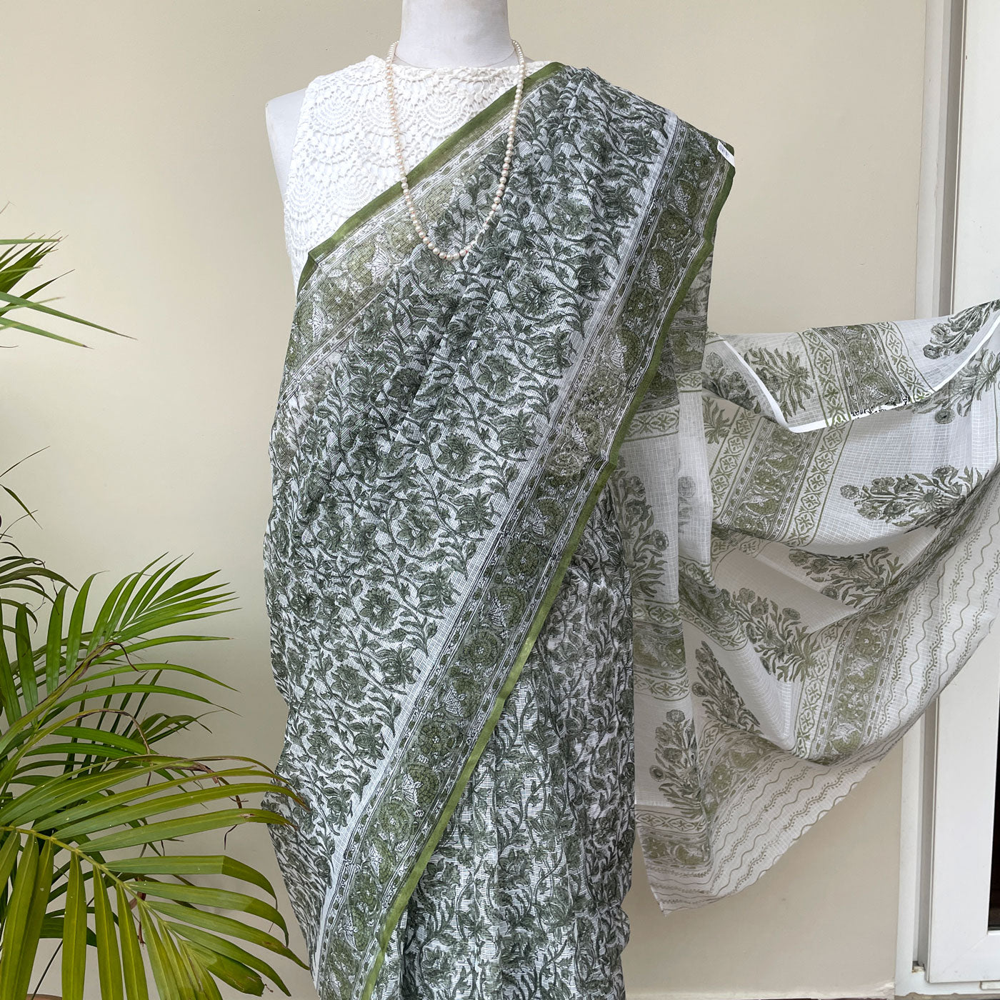 The saree is a masterpiece that celebrates femininity and grace. The jaal pattern dabu print on the body and the intricate border design adds an element of allure, making you feel like a true queen. Embrace your beauty and captivate hearts with this exquisite sarees.